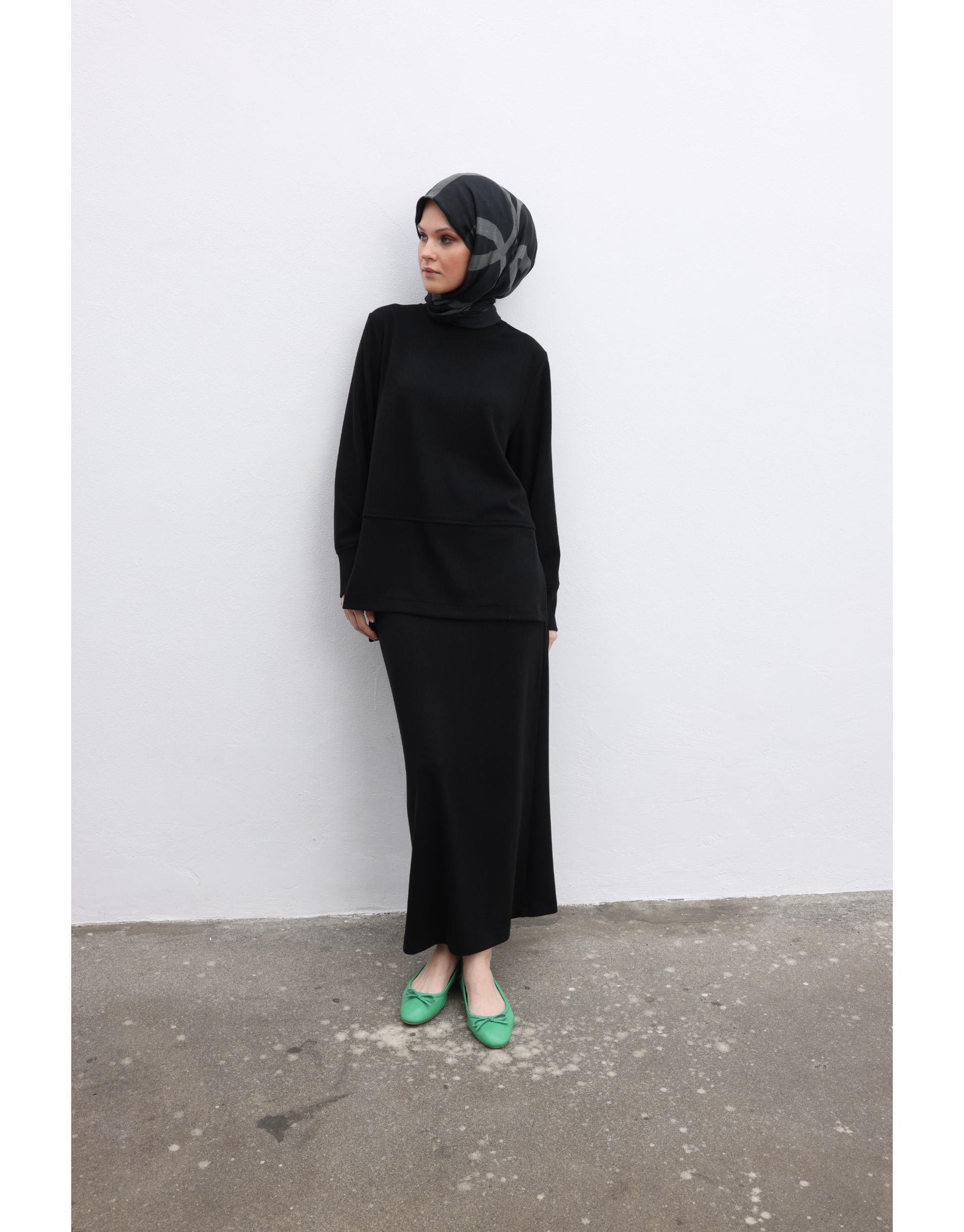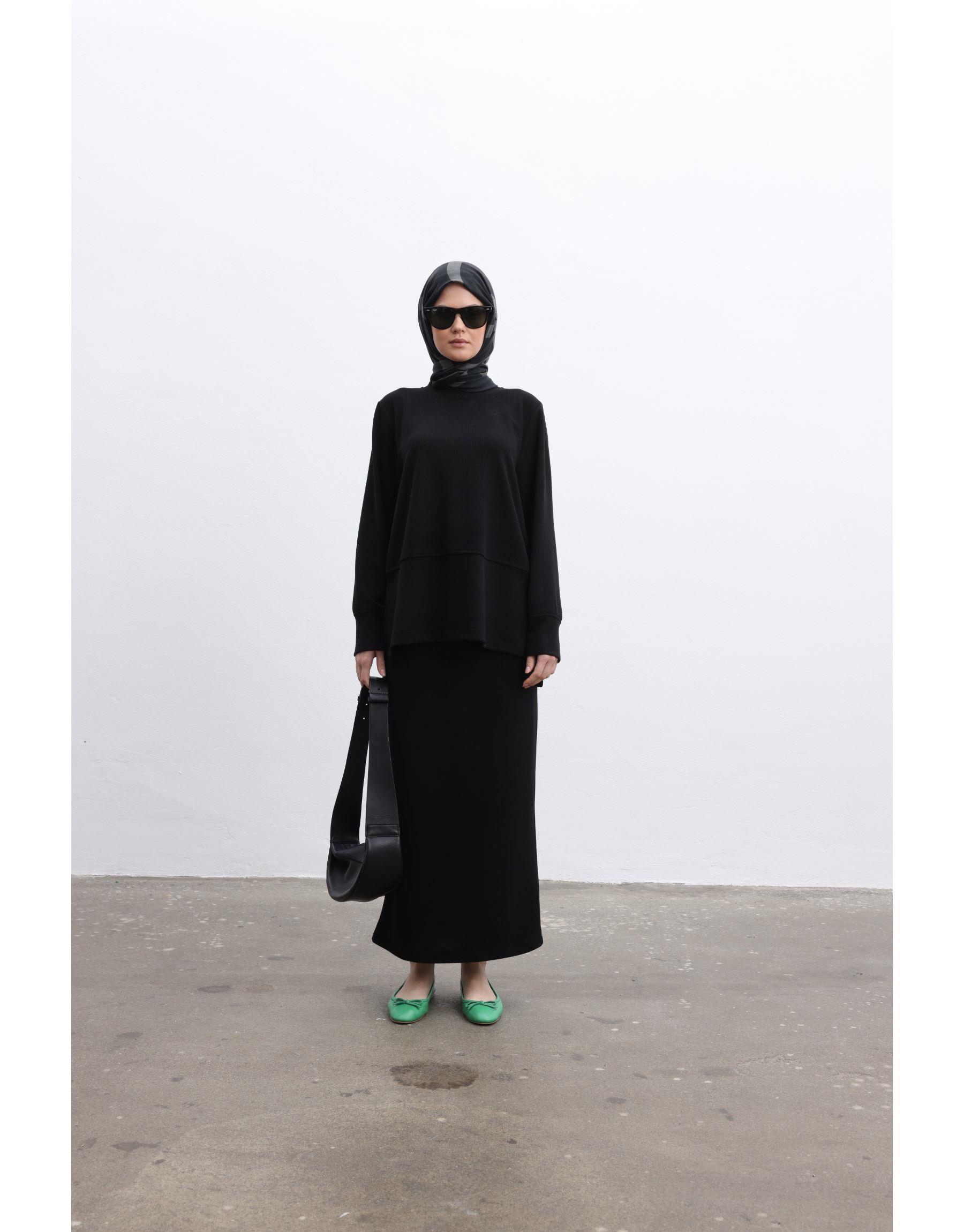Bayan Siyah Triko Kalem Etekli Takım | Sarprive