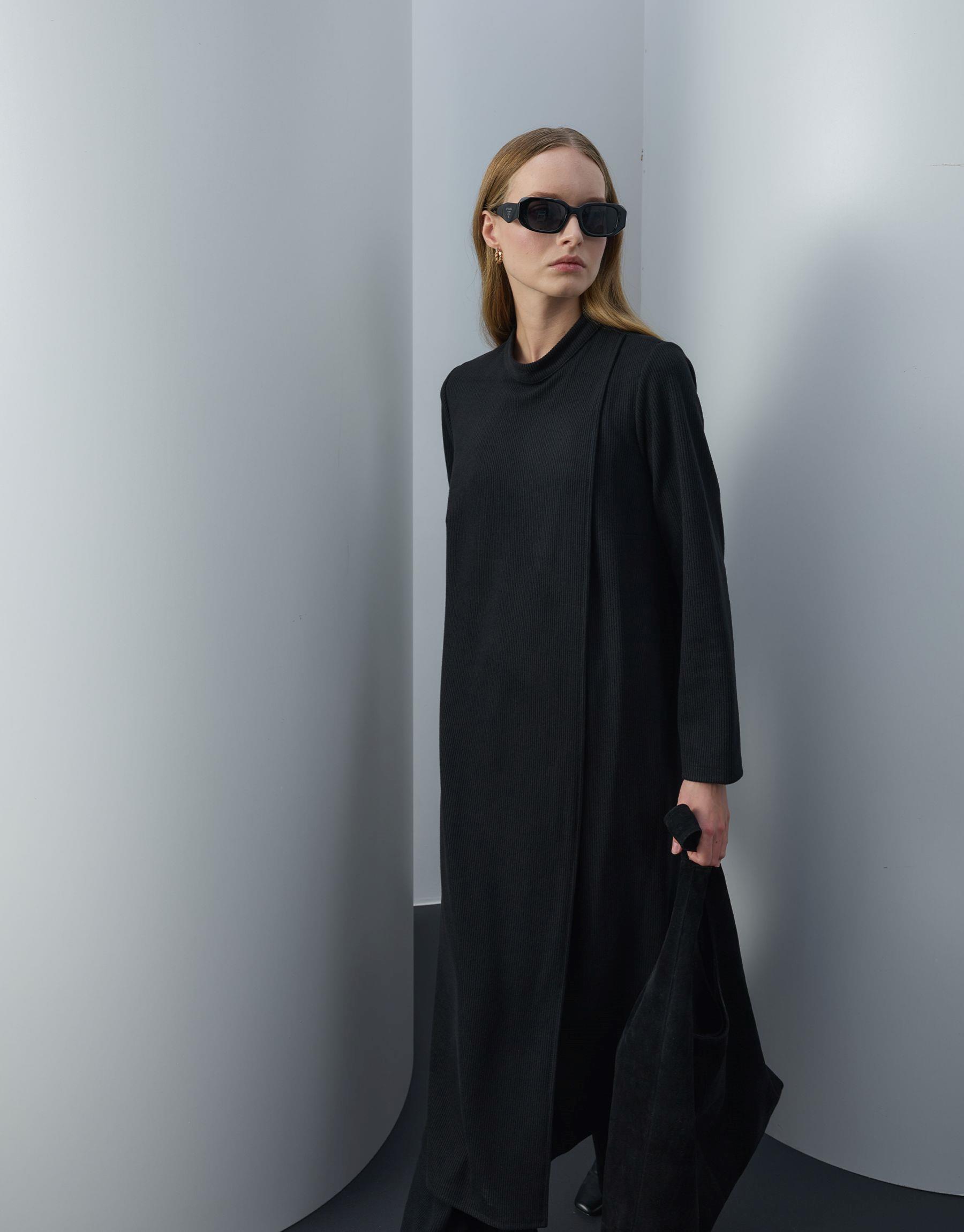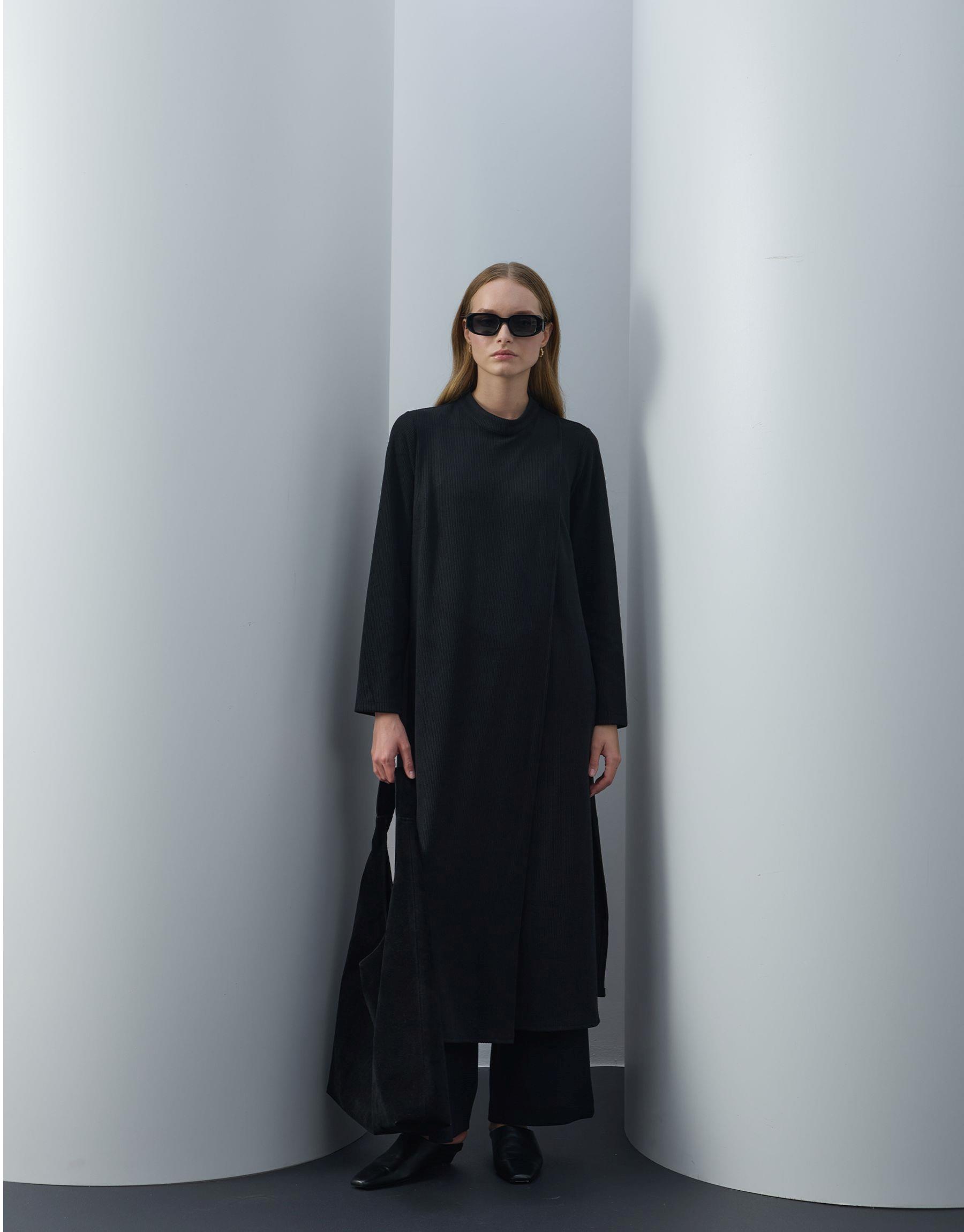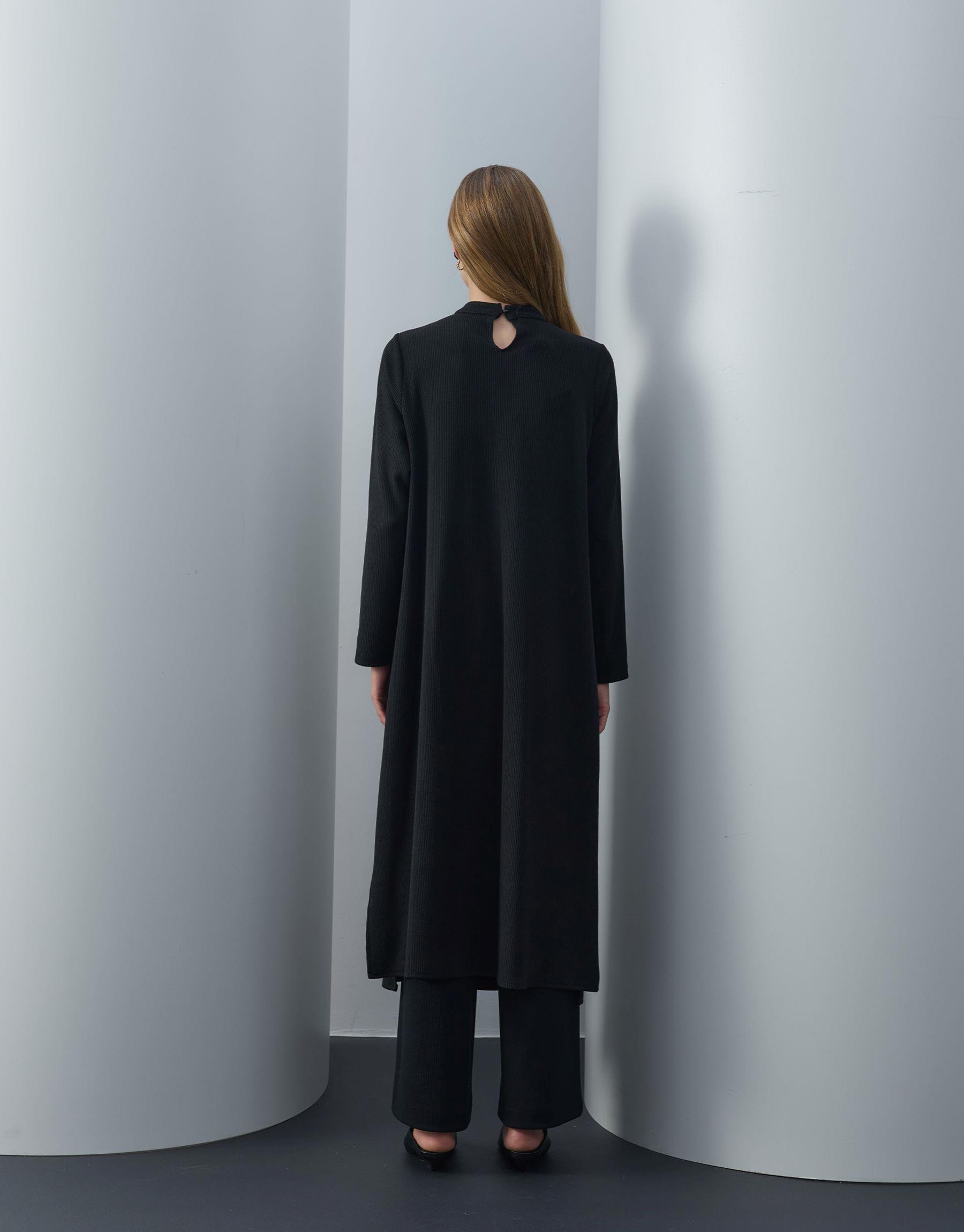 Bayan Siyah Triko Kapaklı Bol Form Takım | Sarprive
