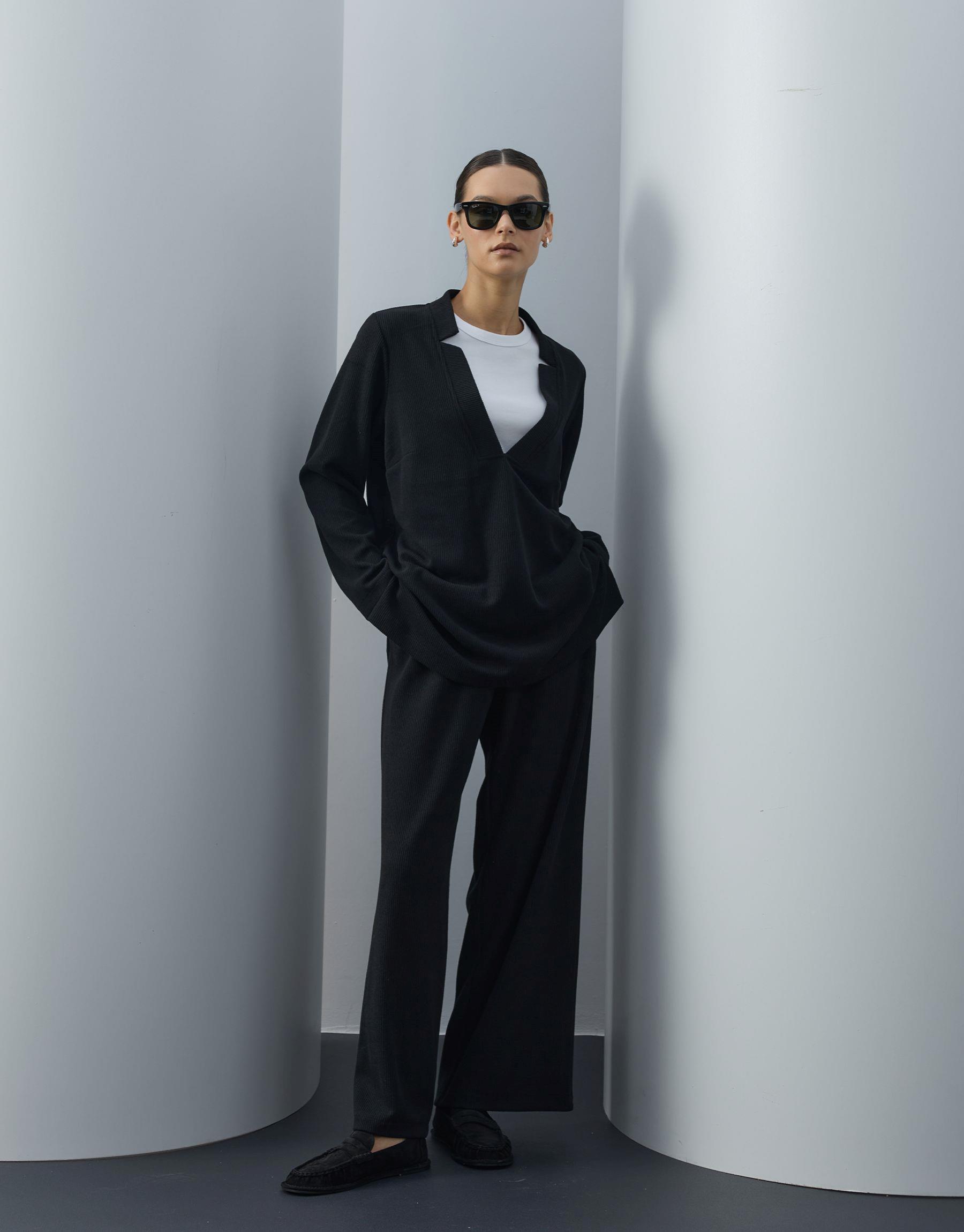 Bayan Siyah Triko V Yaka Bol Formlu Takım | Sarprive