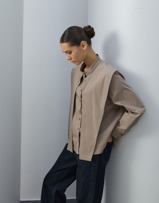 Bayan Vizon Poplin Aller Parçalı Gömlek | Sarprive