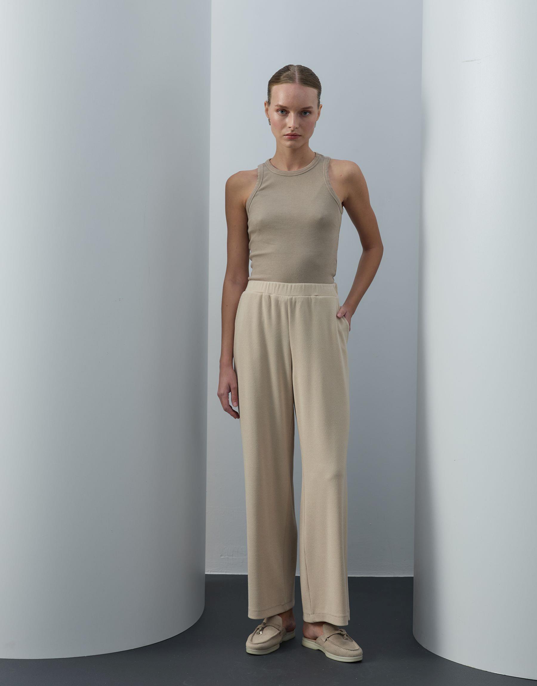 Bayan Bej Triko Cepli Bol Pantolon | Sarprive