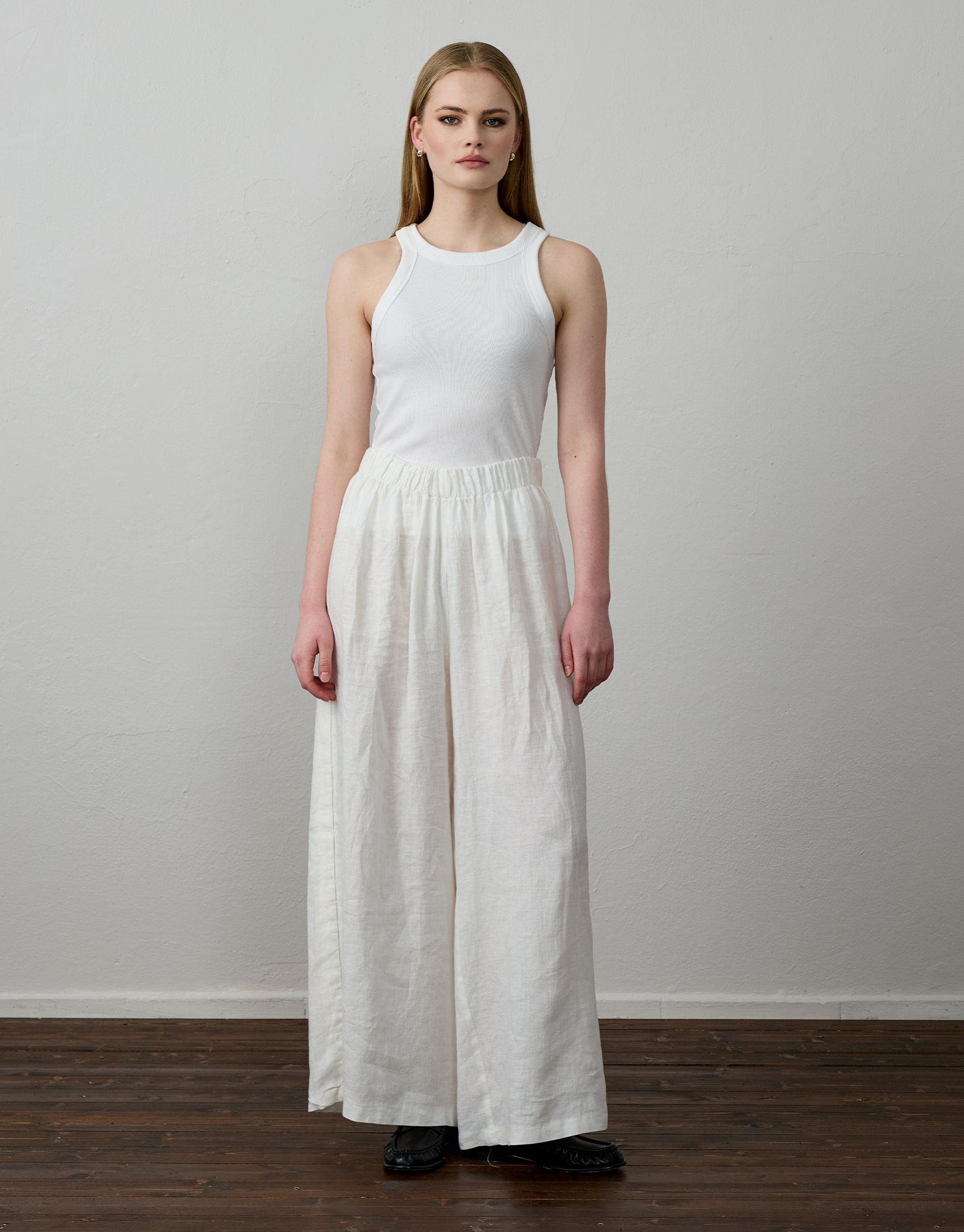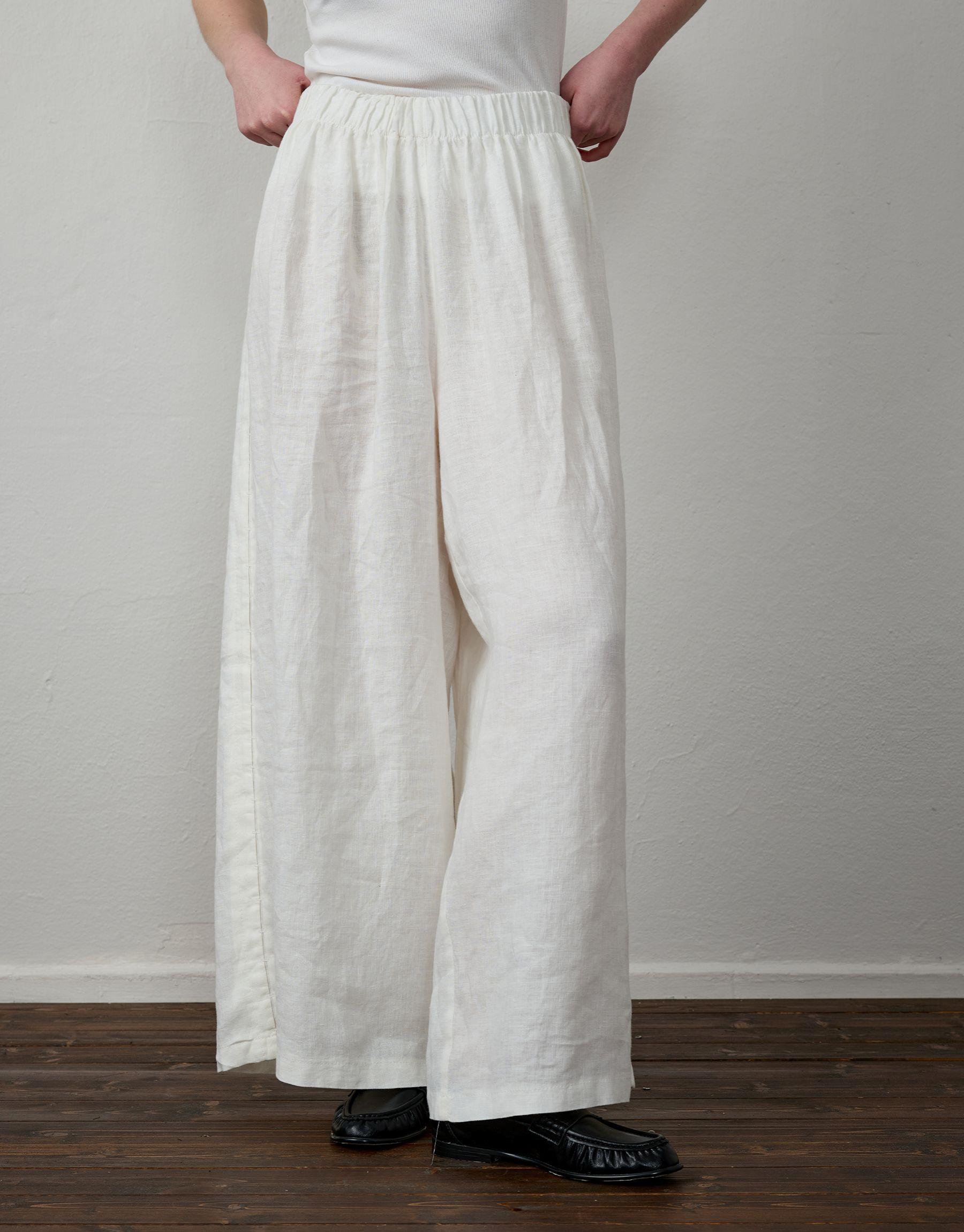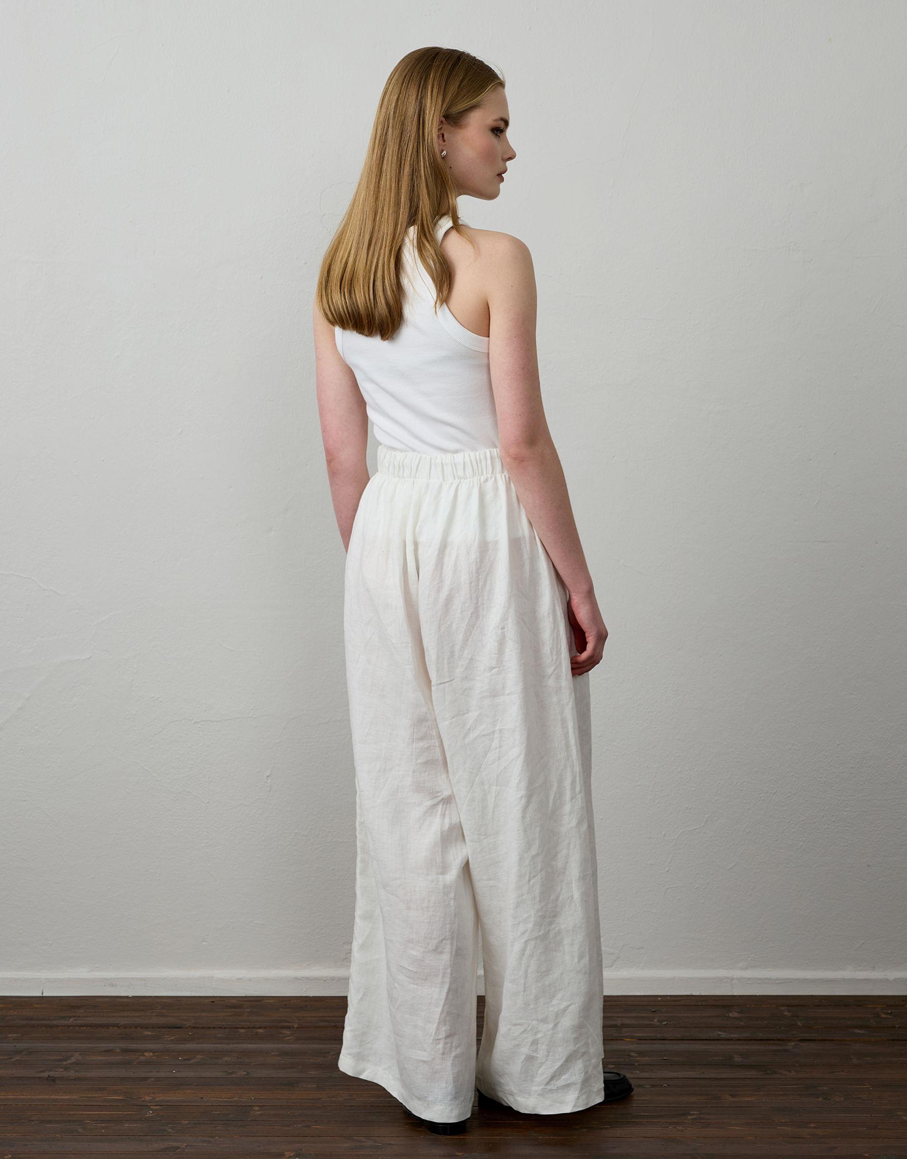 Bayan Beyaz %100 Keten Punteriz Dikiş Pantolon | Sarprive