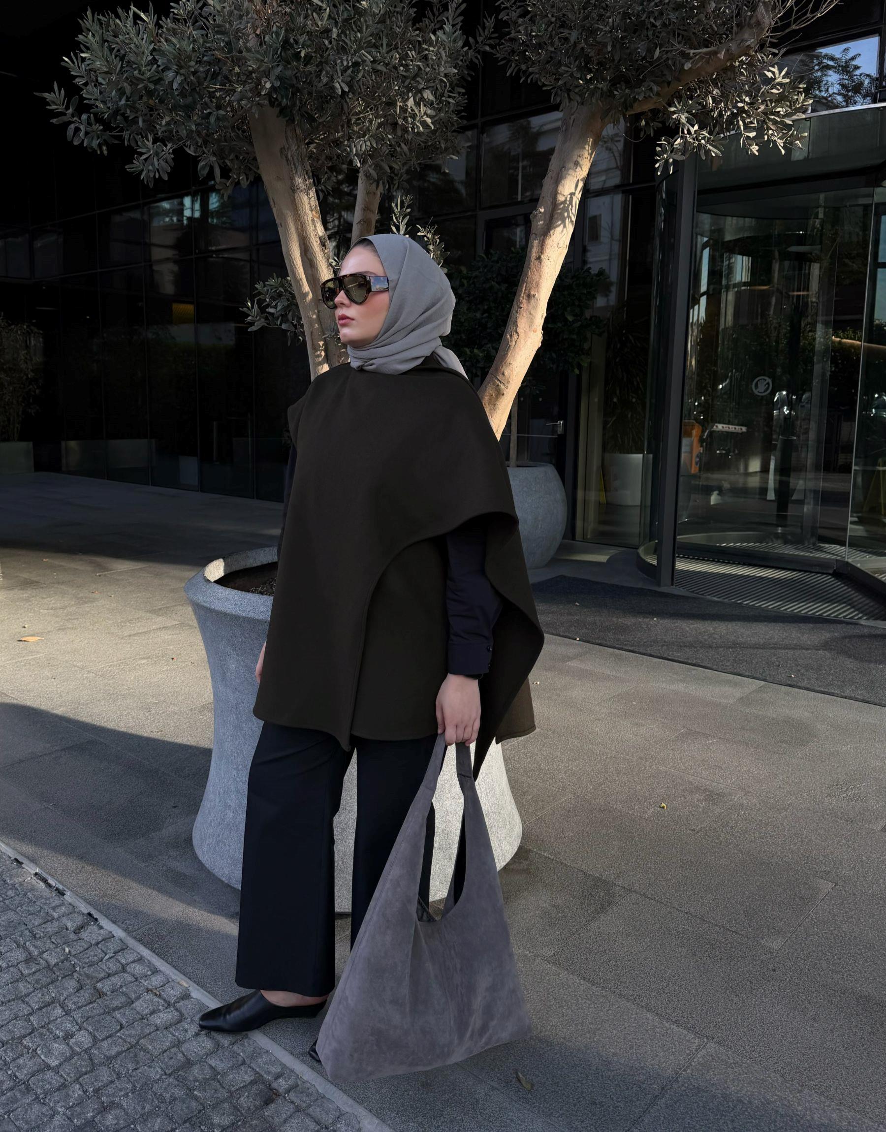 Bayan Haki Yün Karışımlı Panço | Sarprive
