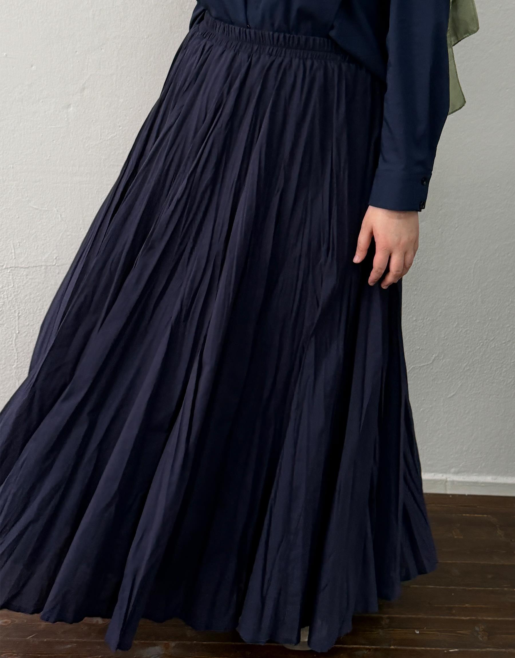 Lacivert Pamuklu Godeli Hafif Kraşlı Etek