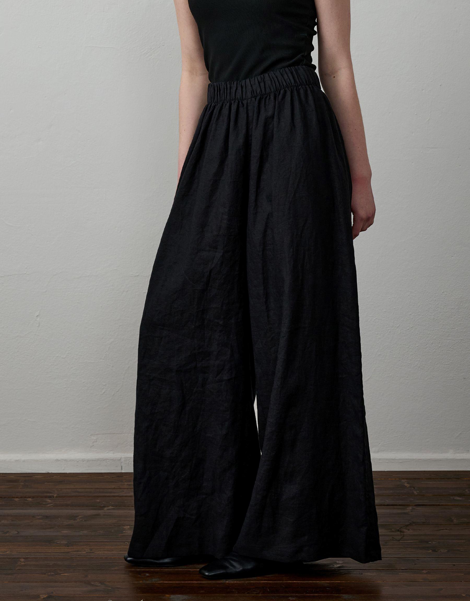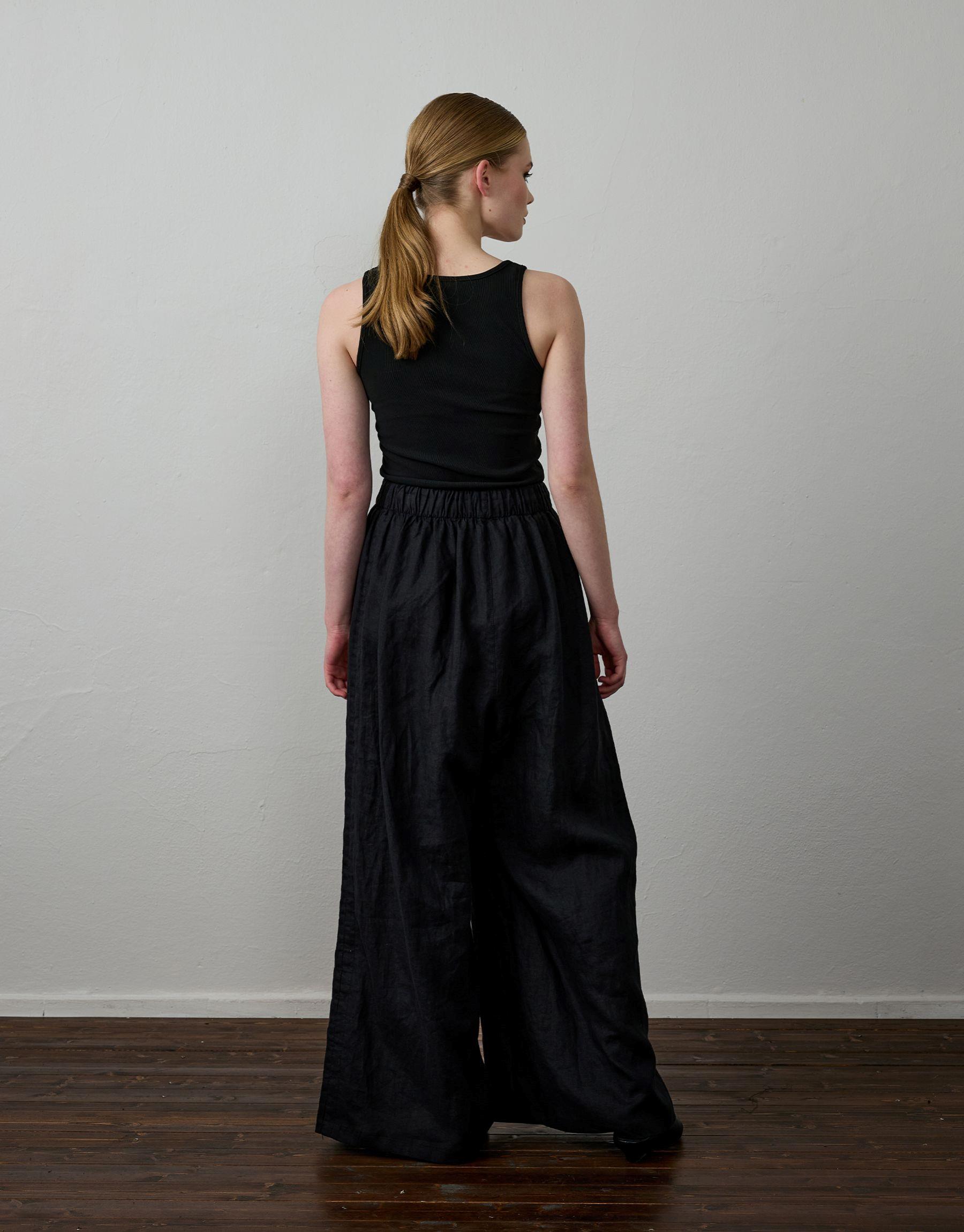 Siyah %100 Keten Punteriz Dikiş Pantolon