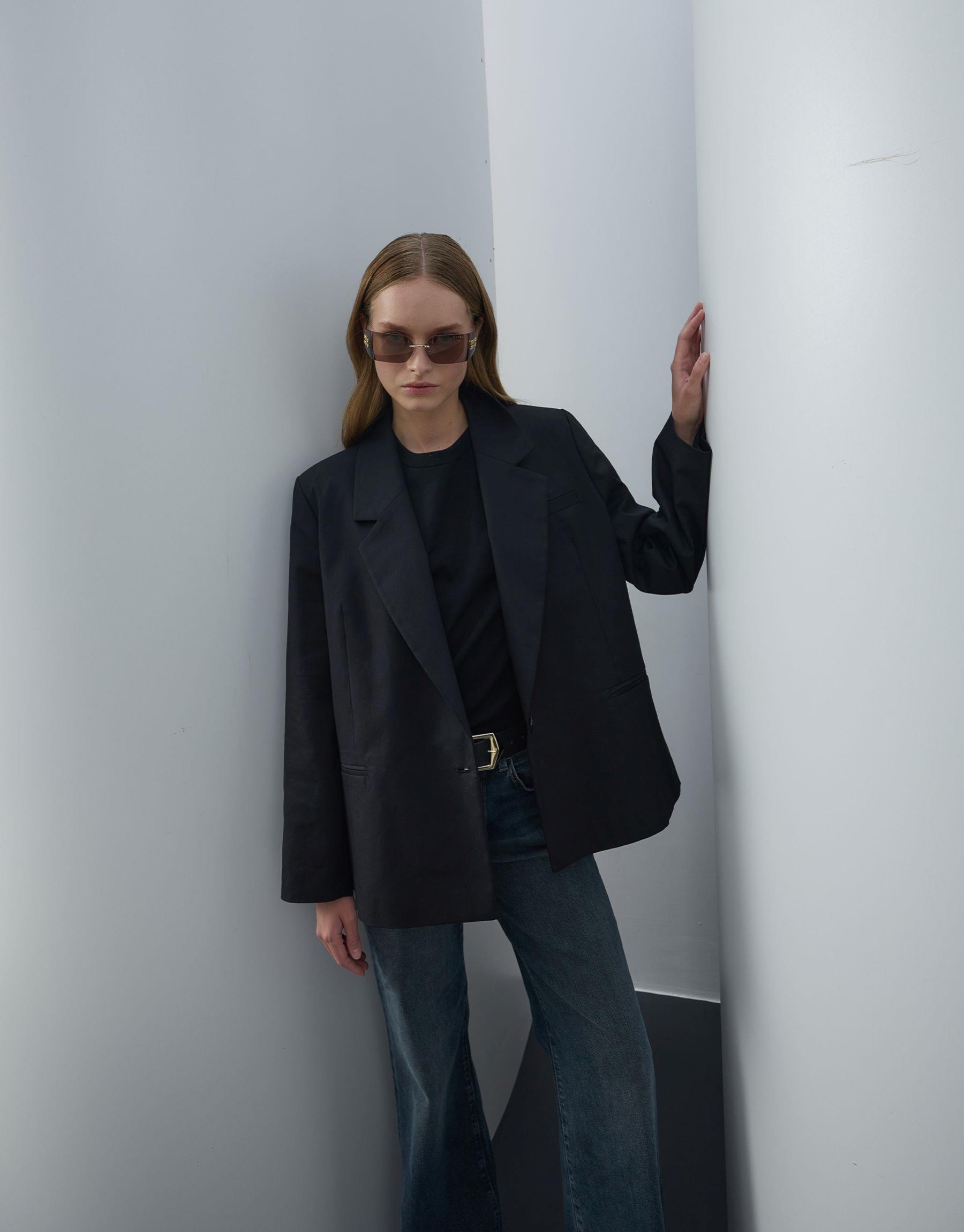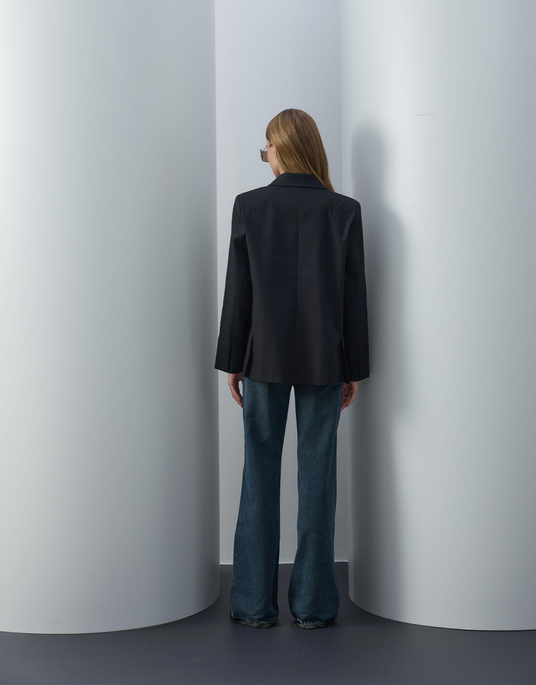 Bayan Siyah Koton Blazer Ceket | Sarprive