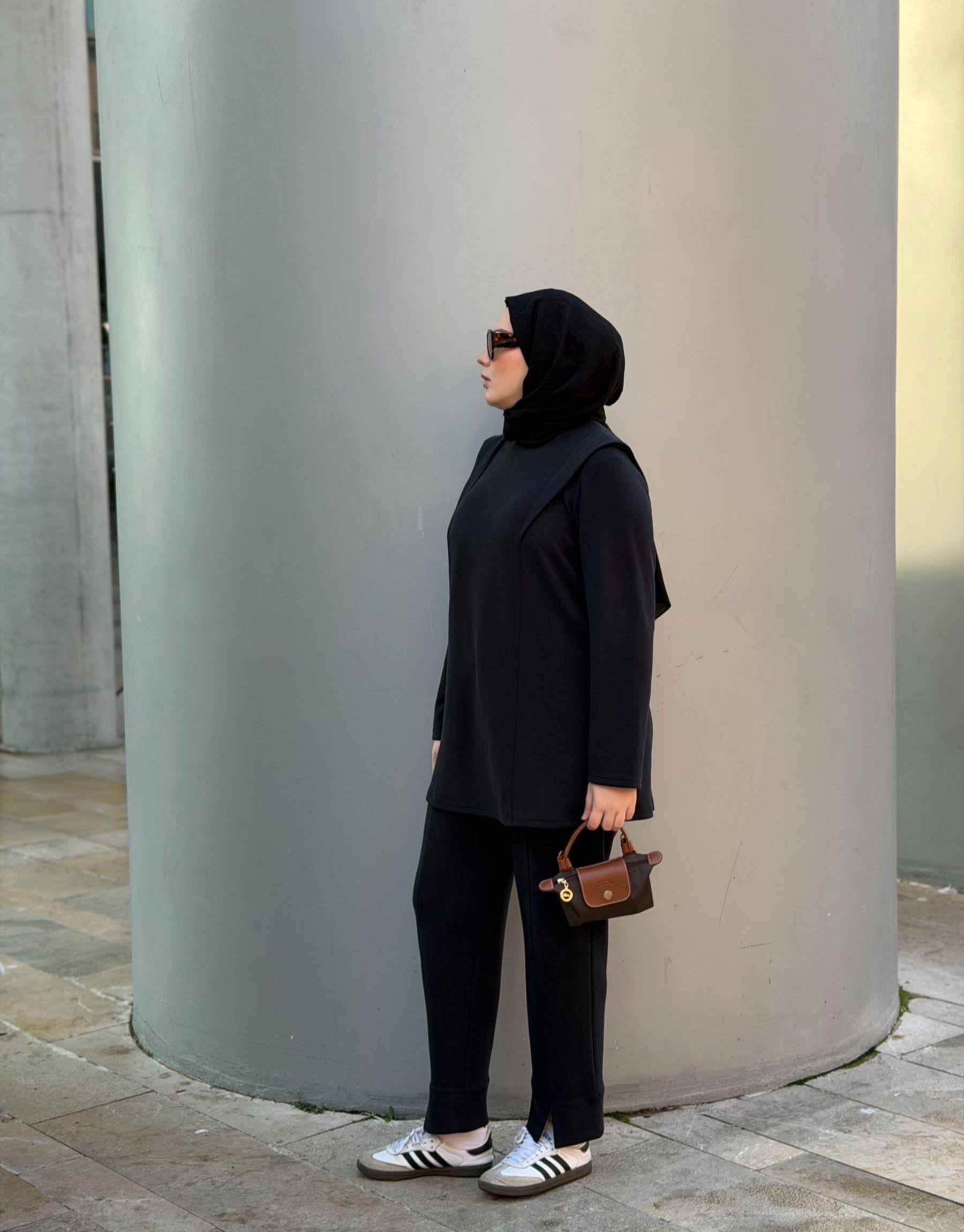 Bayan Siyah Modal Aller Omuz Detaylı Takım | Sarprive