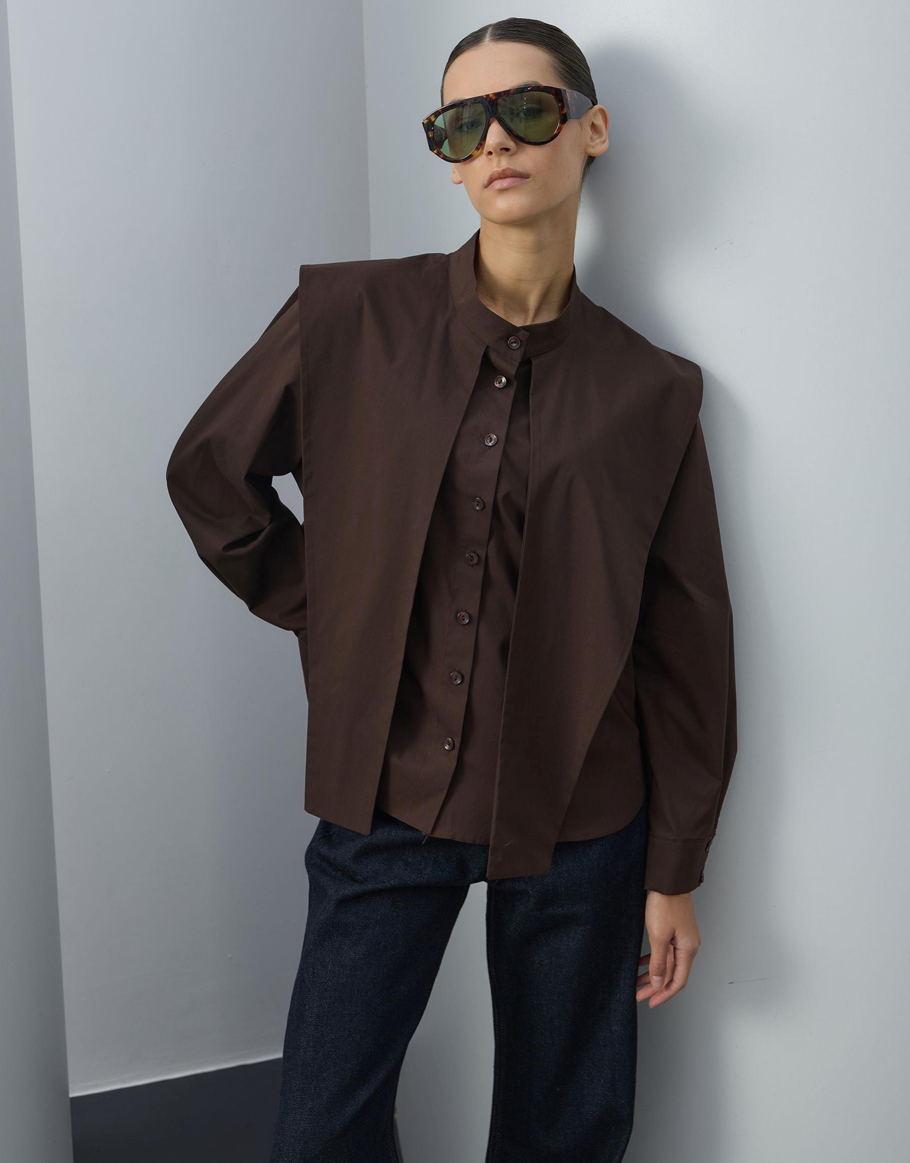 Bayan Acı Kahve Poplin Aller Parçalı Gömlek | Sarprive