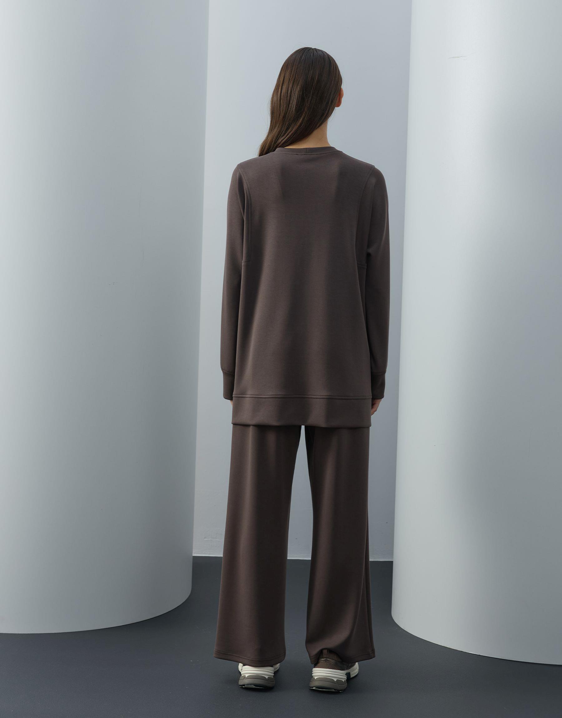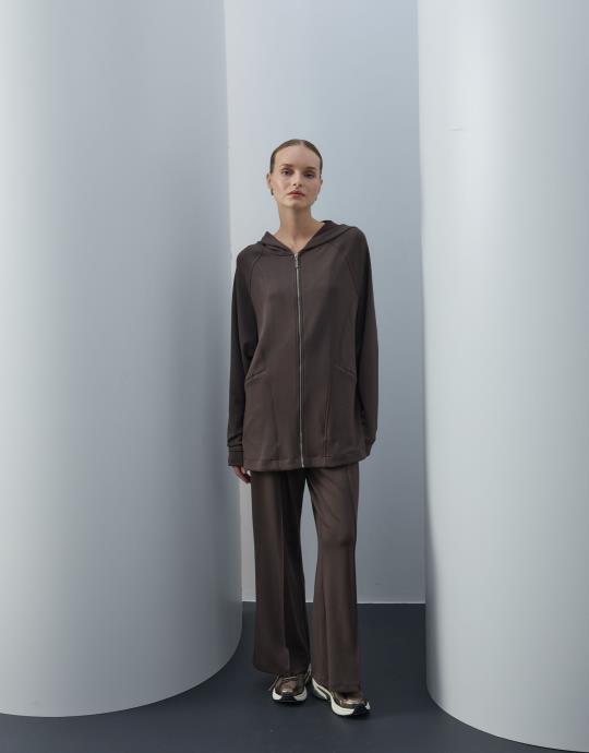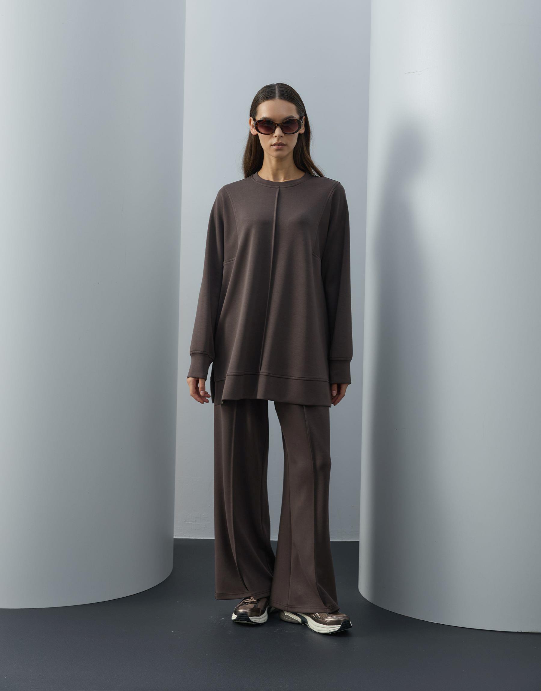Bayan Acı Kahve Modal Nervür Dikişli Takım | Sarprive