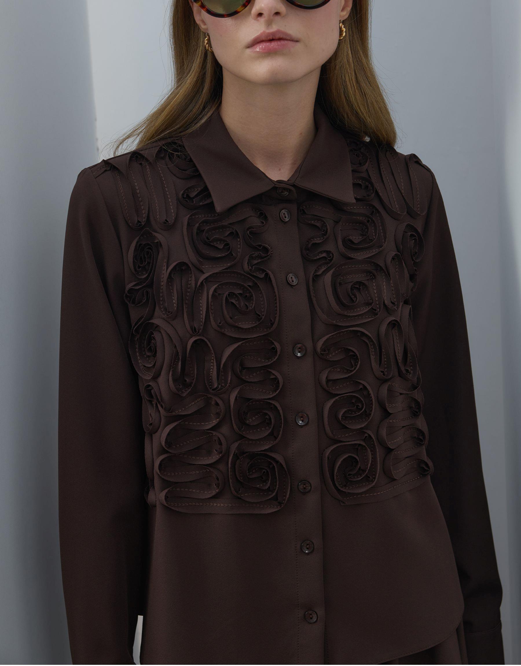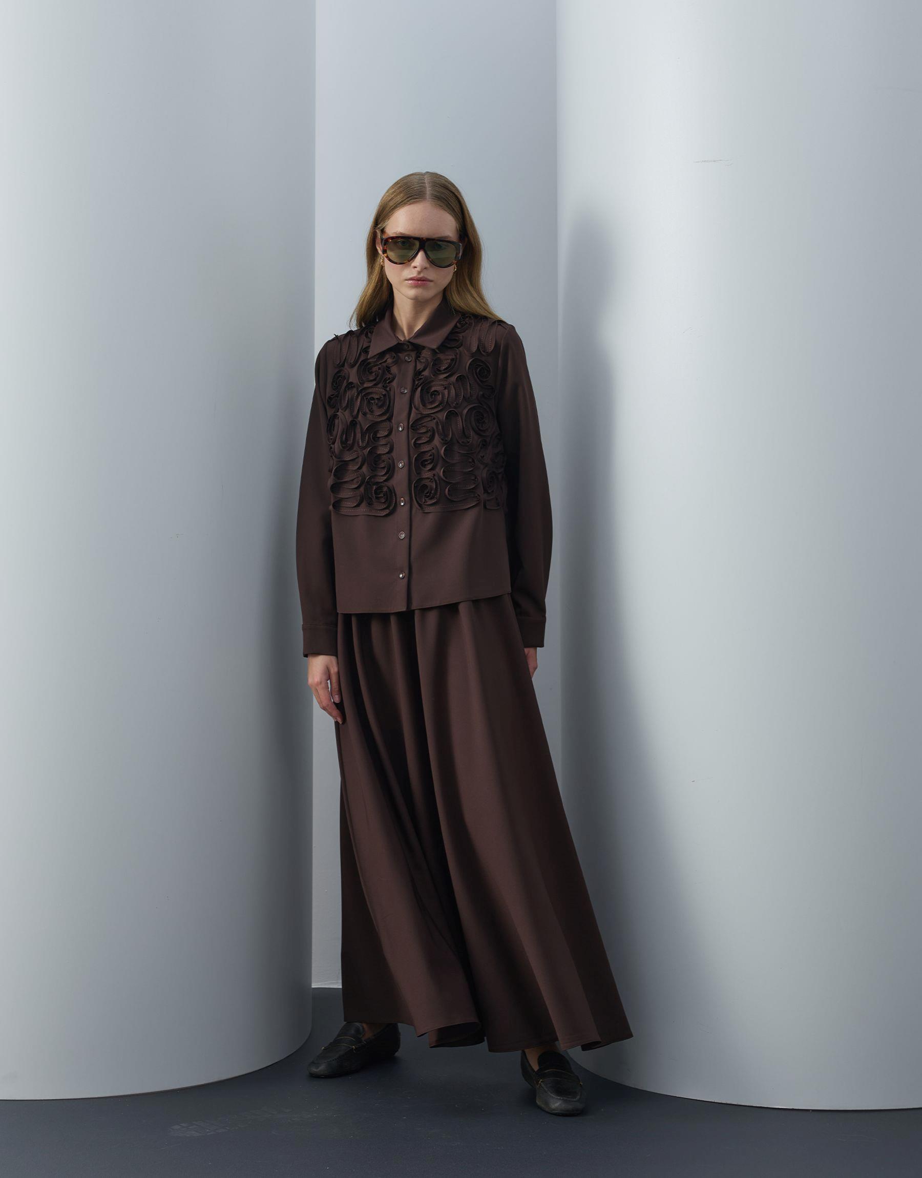 Bayan Acı Kahve Nakış Detaylı Etekli Takım | Sarprive