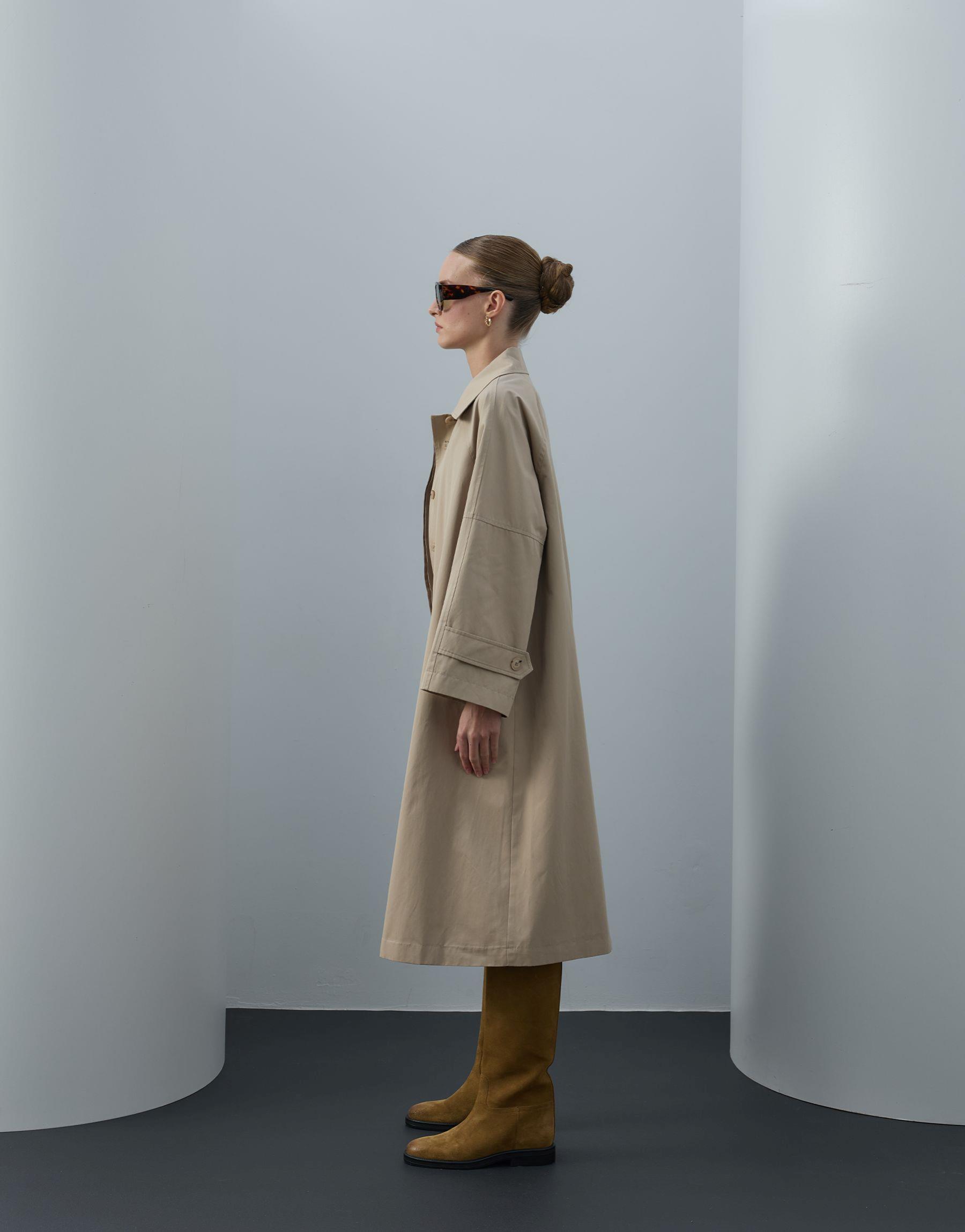 Bayan Bej Kemerli Uzun Trençkot | Sarprive