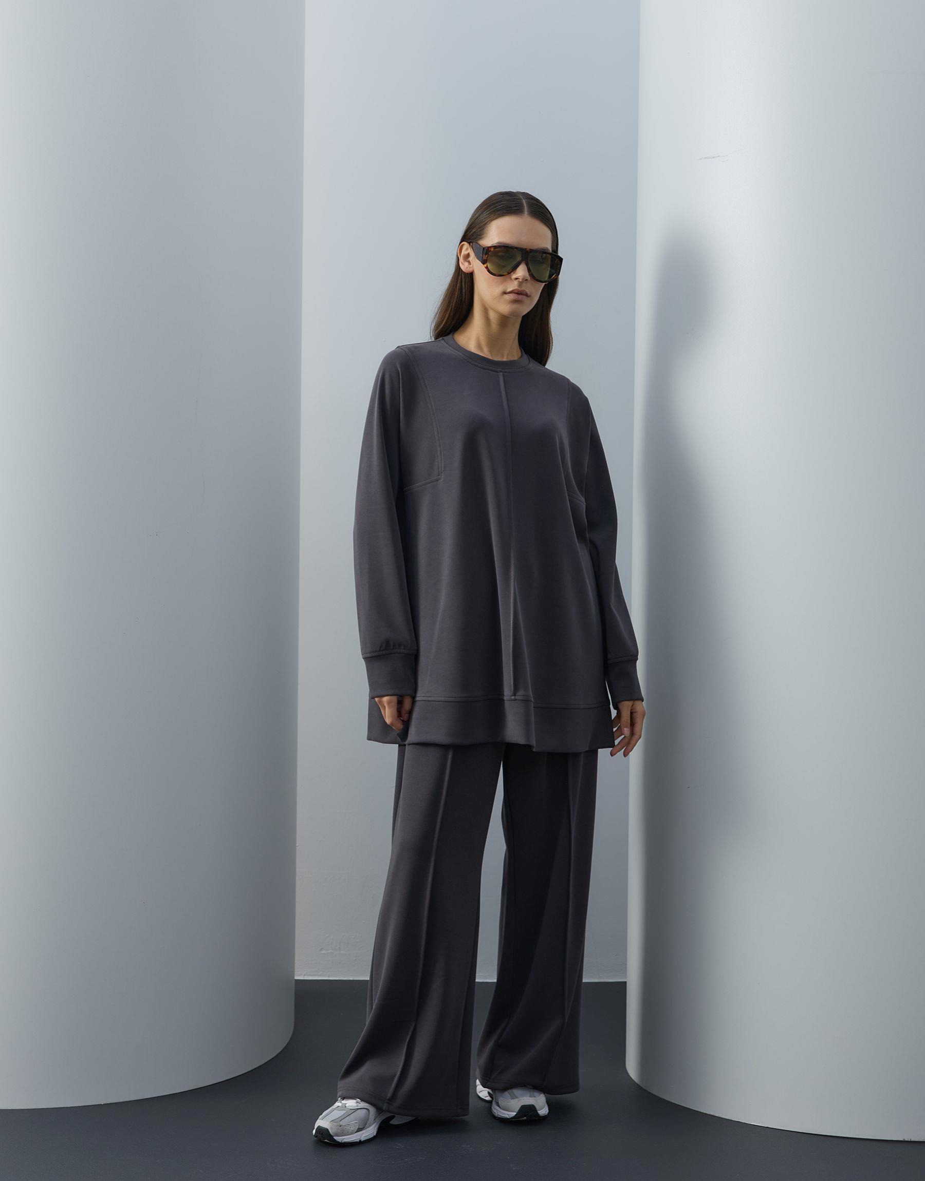 Bayan Füme Modal Nervür Dikişli Takım | Sarprive