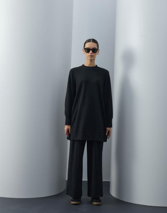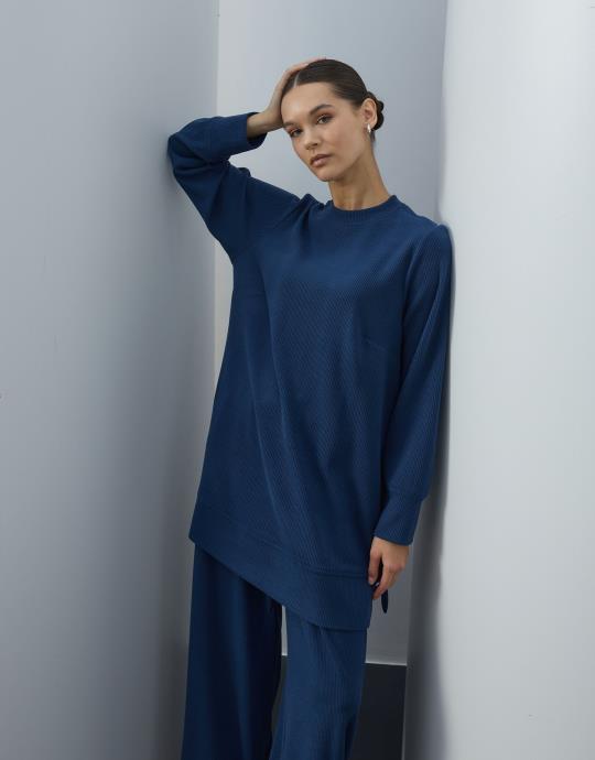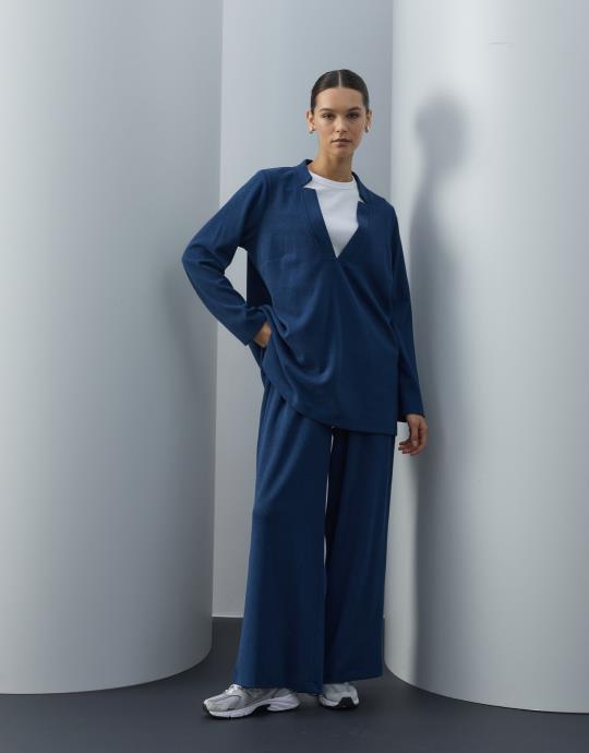 Açık Lacivert Triko V Yaka Bol Formlu Takım