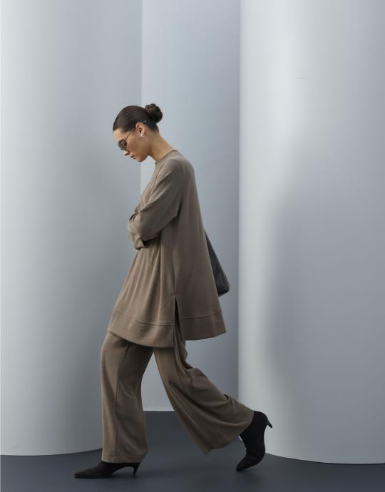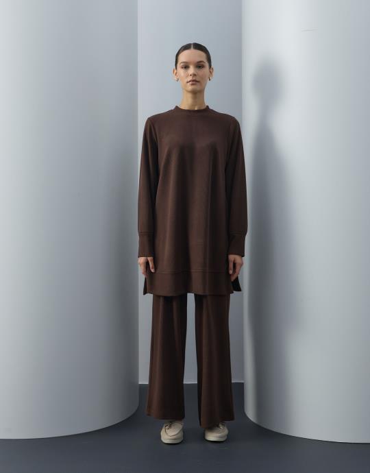 Acı Kahve Triko V Yaka Bol Formlu Takım