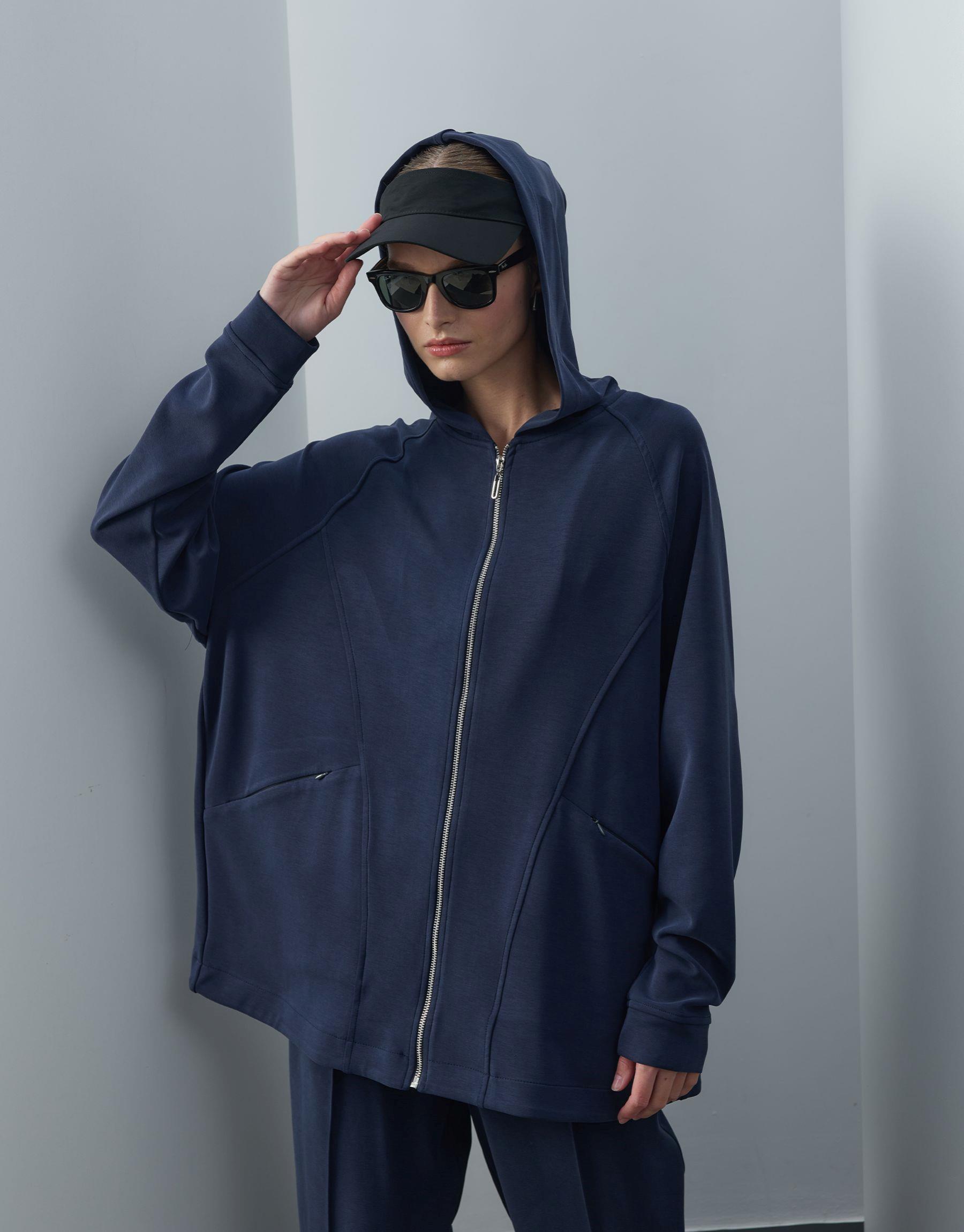 Bayan Lacivert Modal Fermuarlı Takım | Sarprive