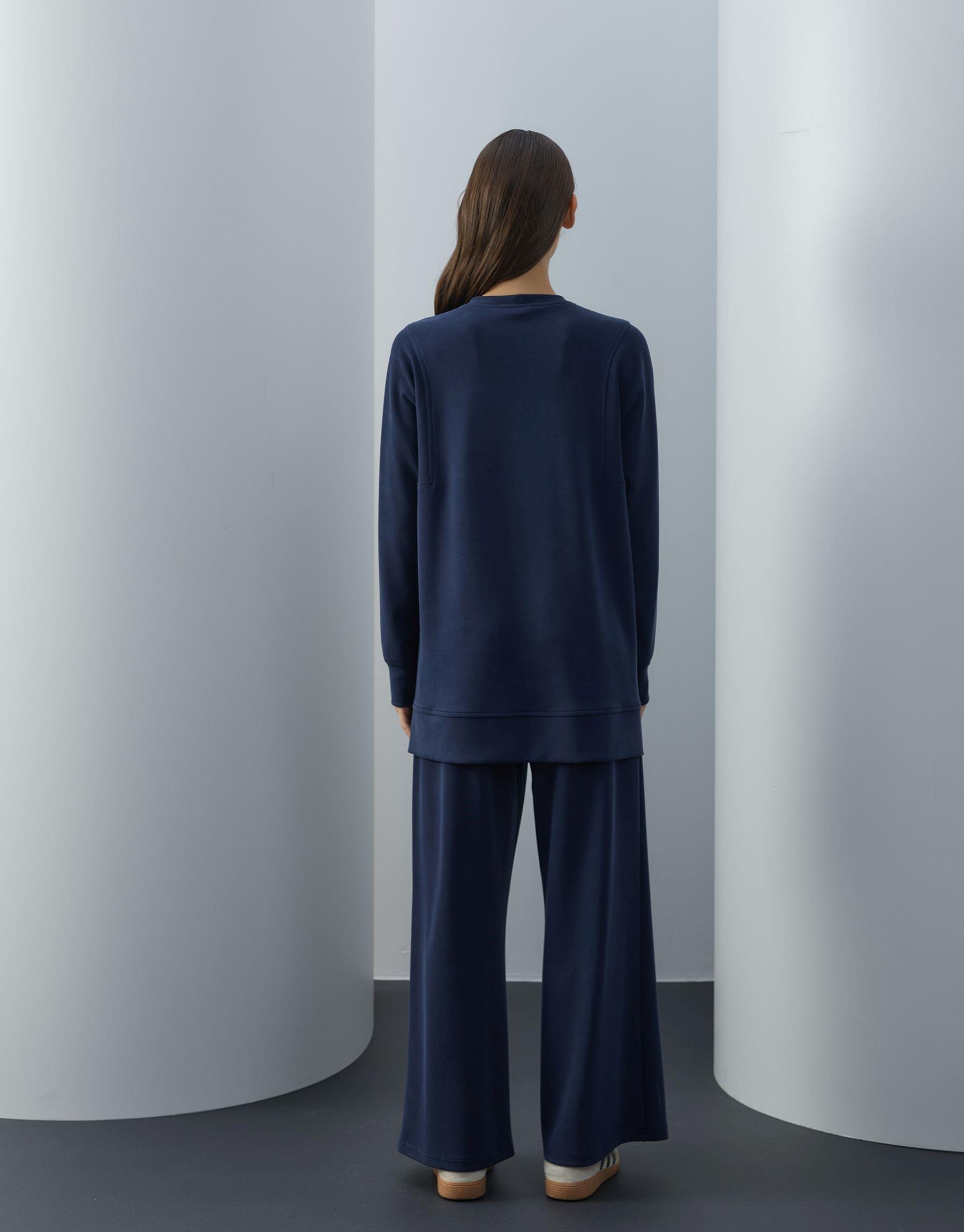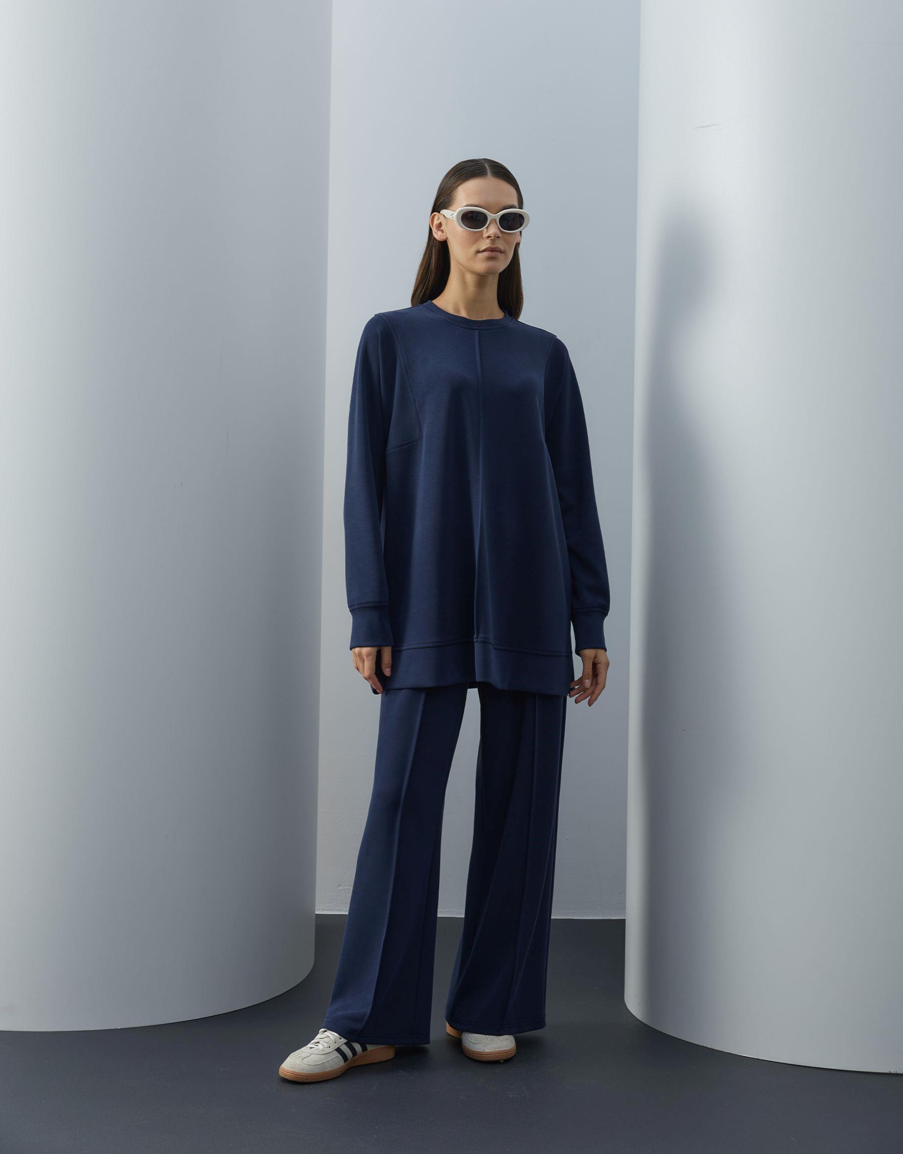 Bayan Lacivert Modal Nervür Dikişli Takım | Sarprive