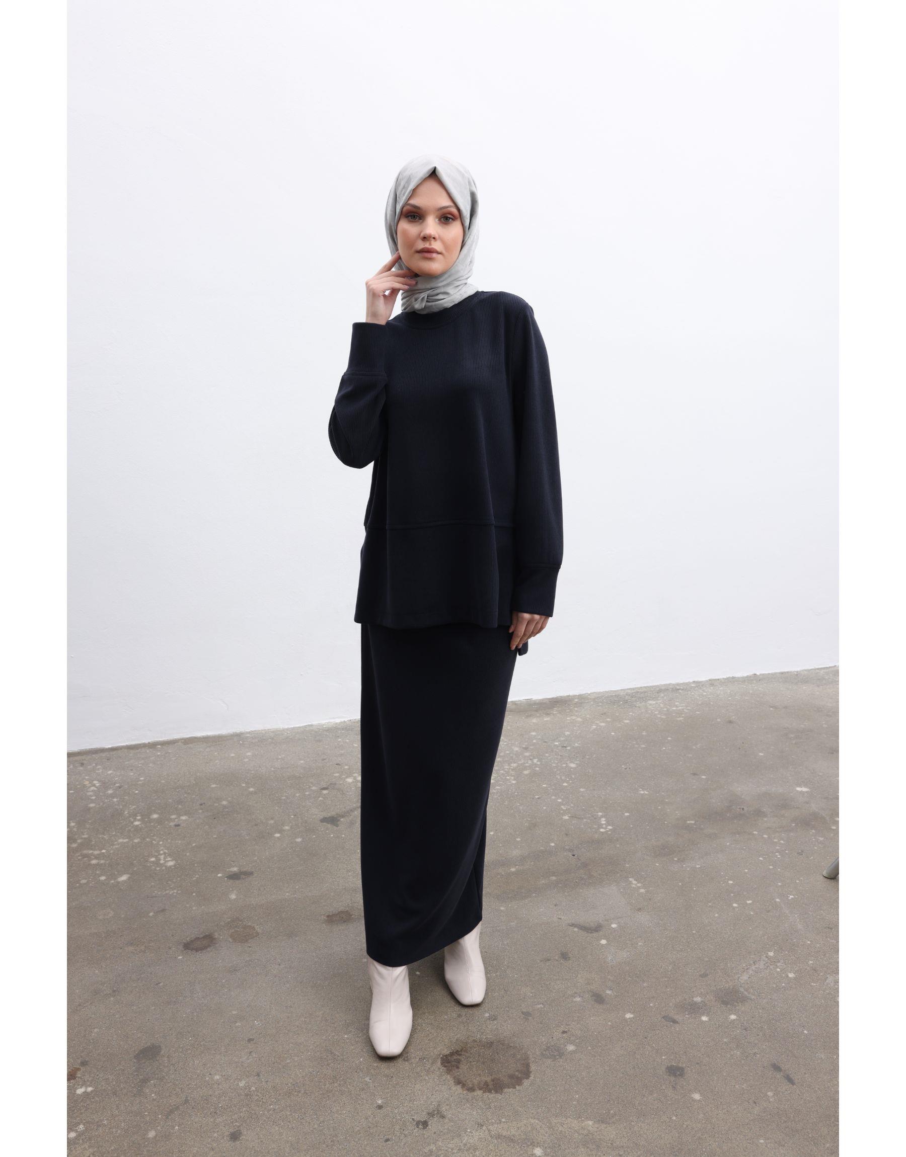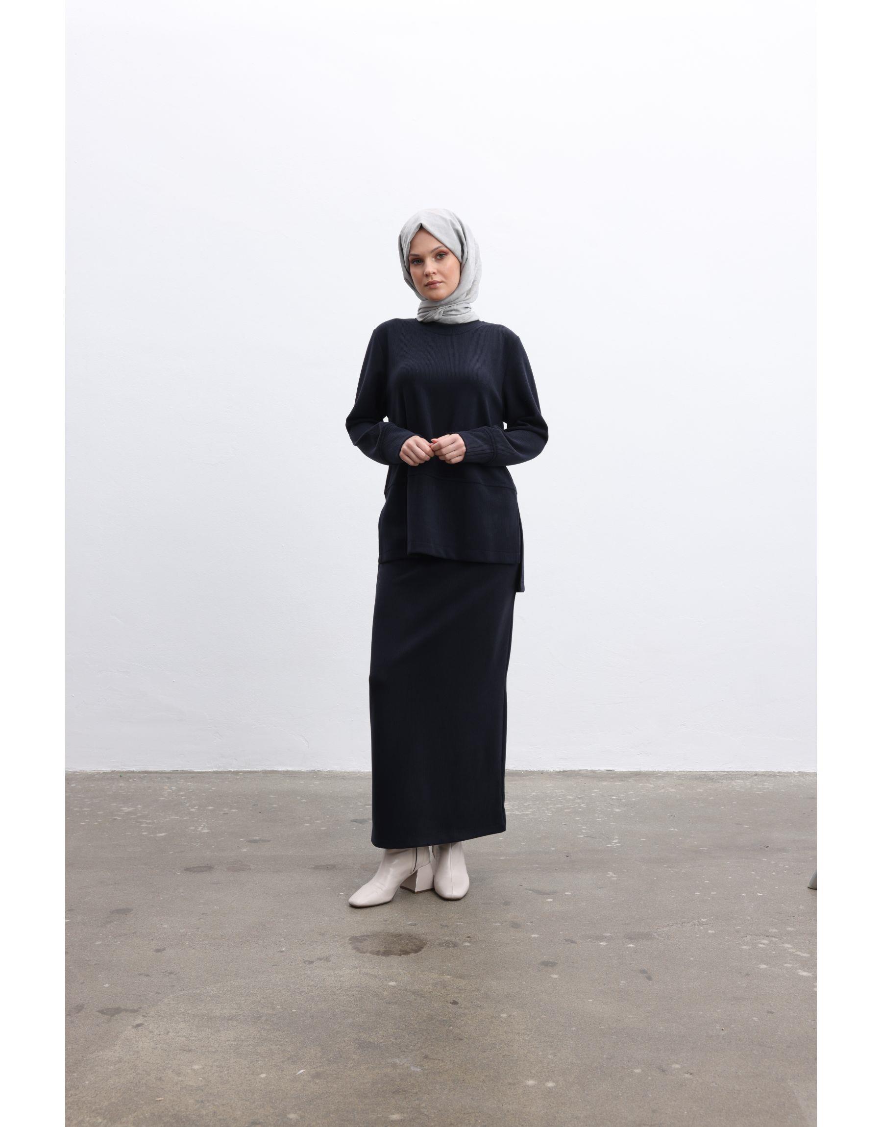Bayan Lacivert Triko Kalem Etekli Takım | Sarprive
