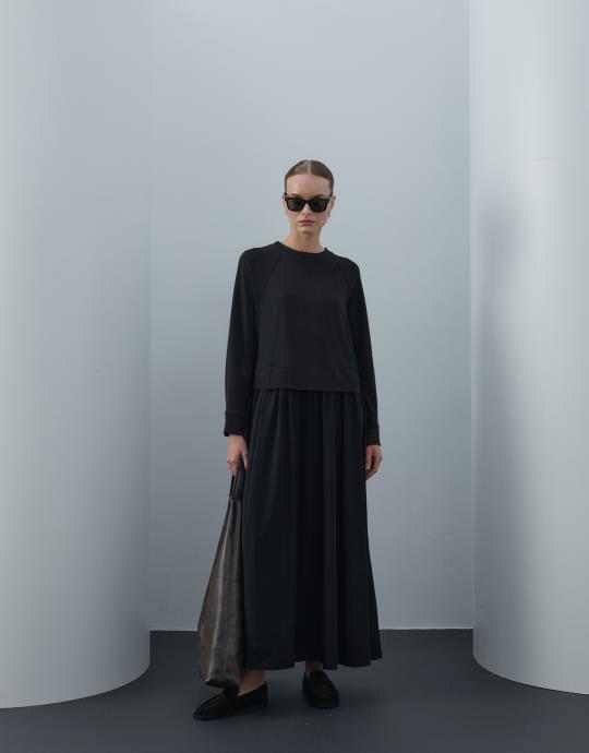 Bayan Siyah Sweat Formlu Teknik Elbise | Sarprive