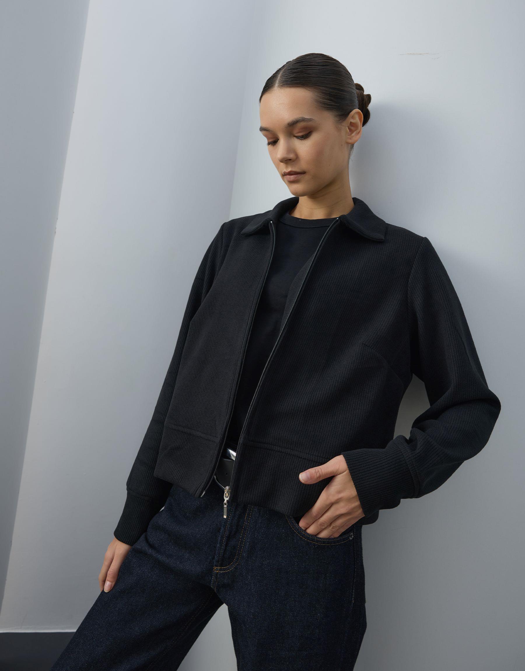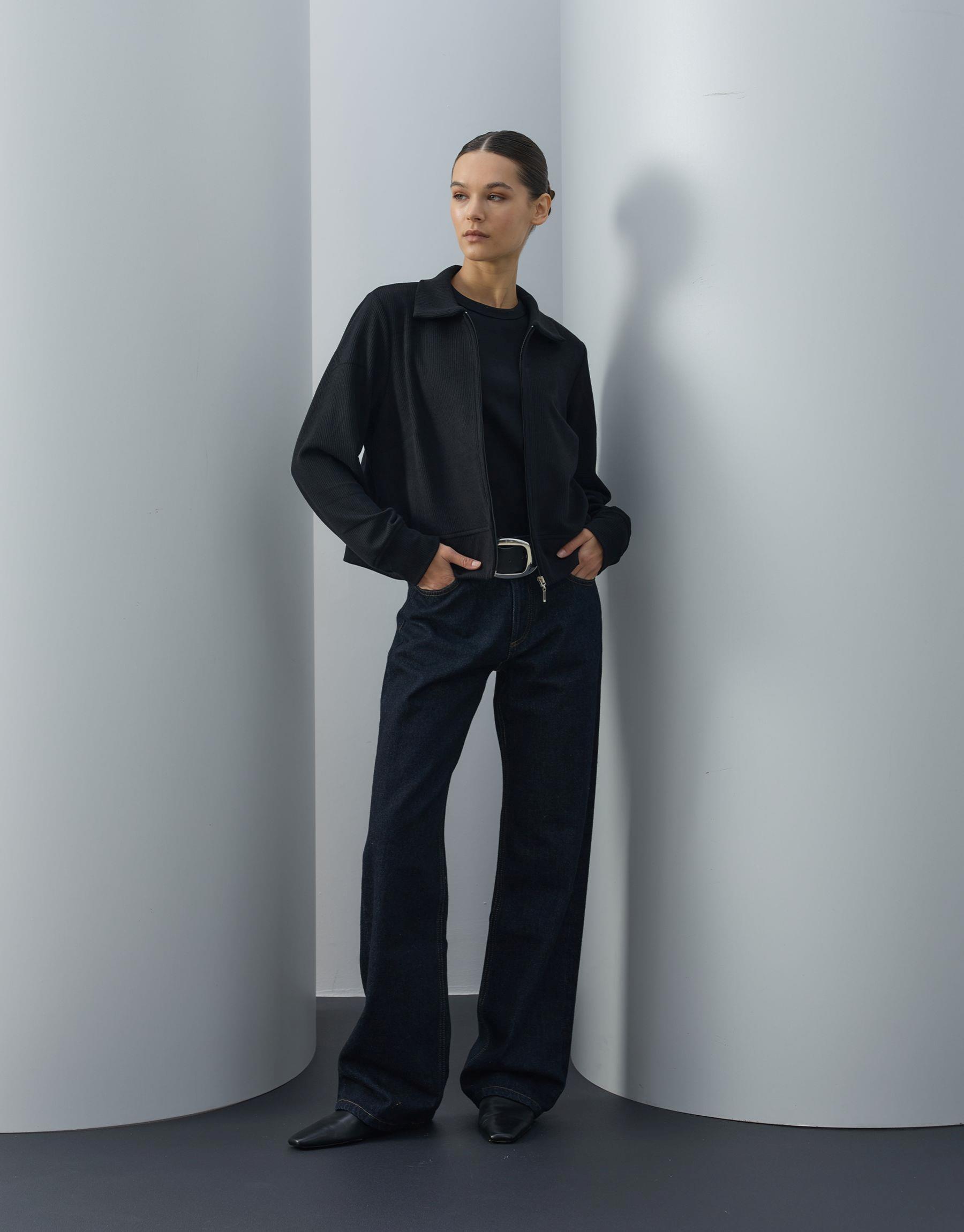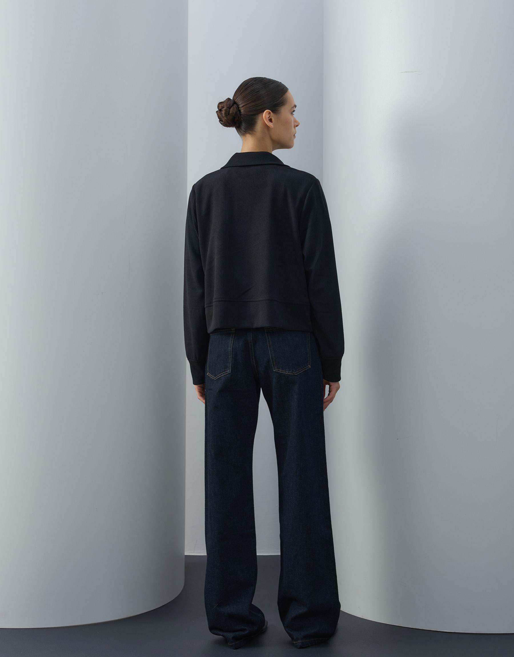 Açık Lacivert Triko Fermuarlı Kısa Sweat
