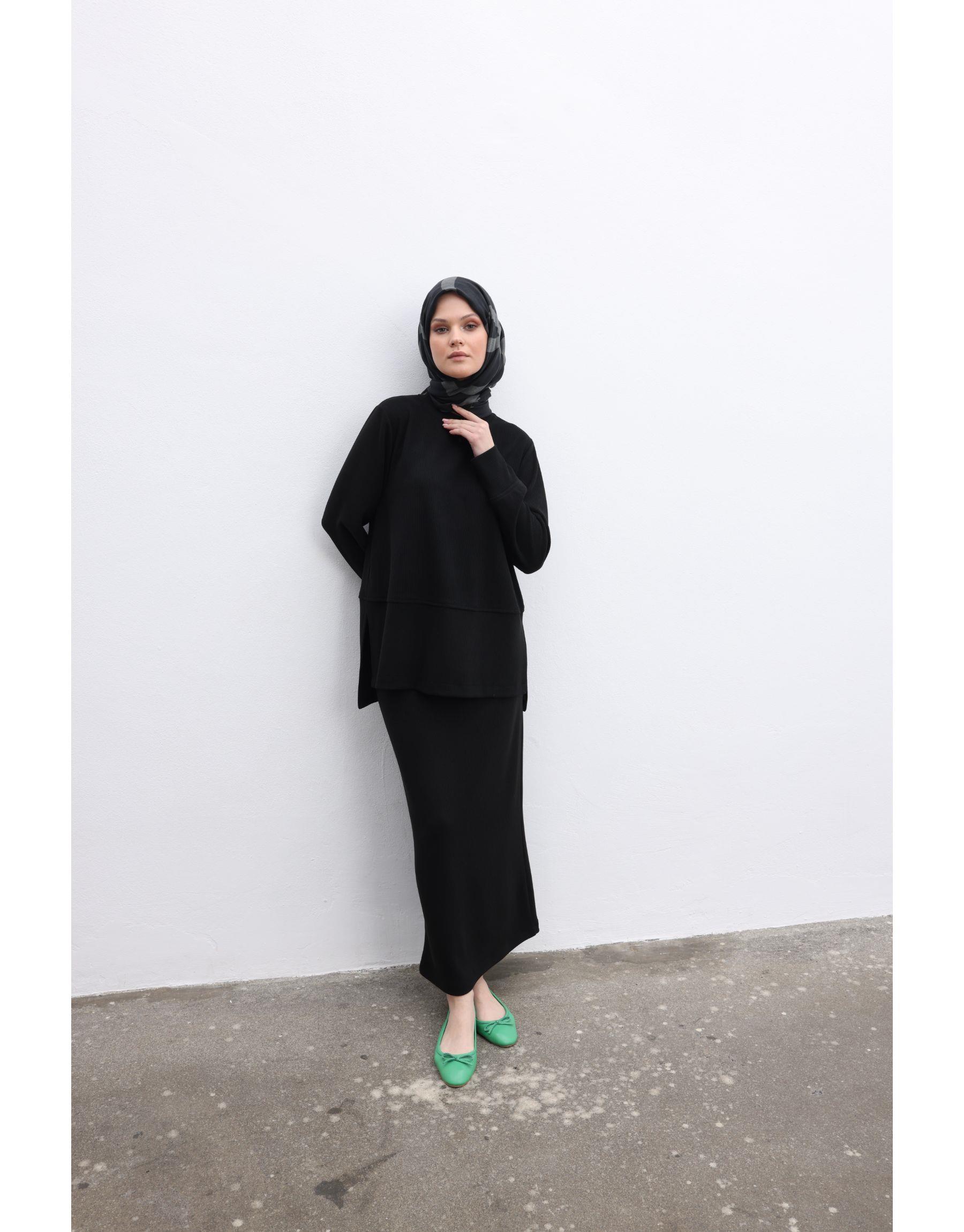 Bayan Siyah Triko Kalem Etekli Takım | Sarprive