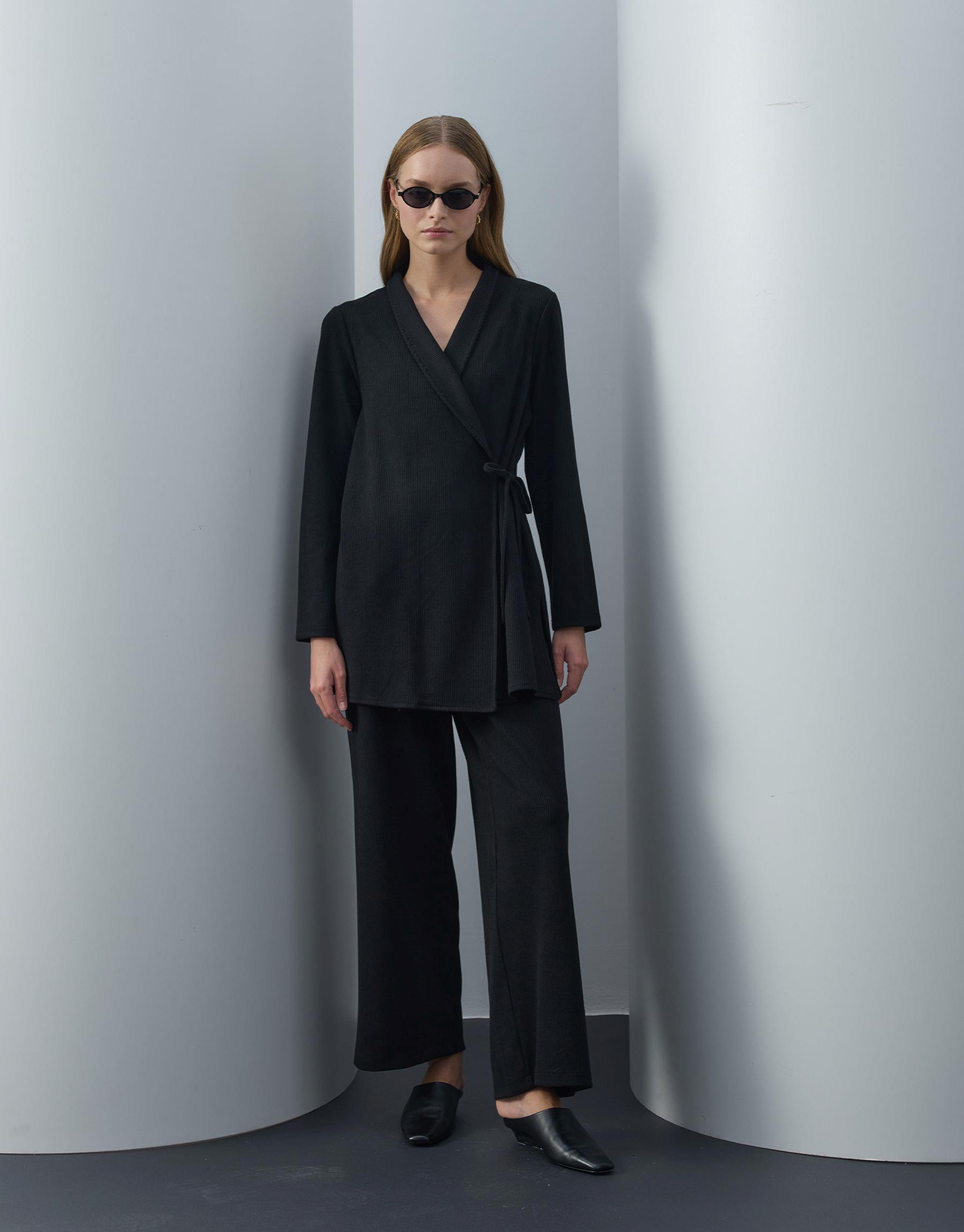 Bayan Siyah Triko Kimono Takım | Sarprive