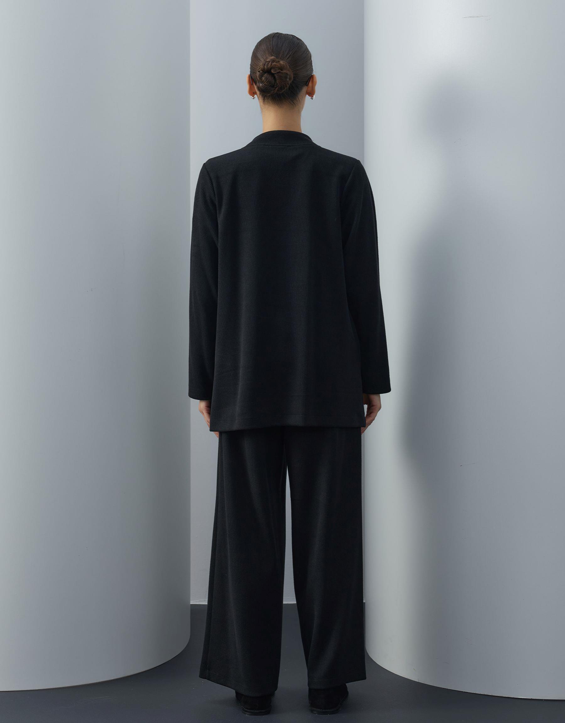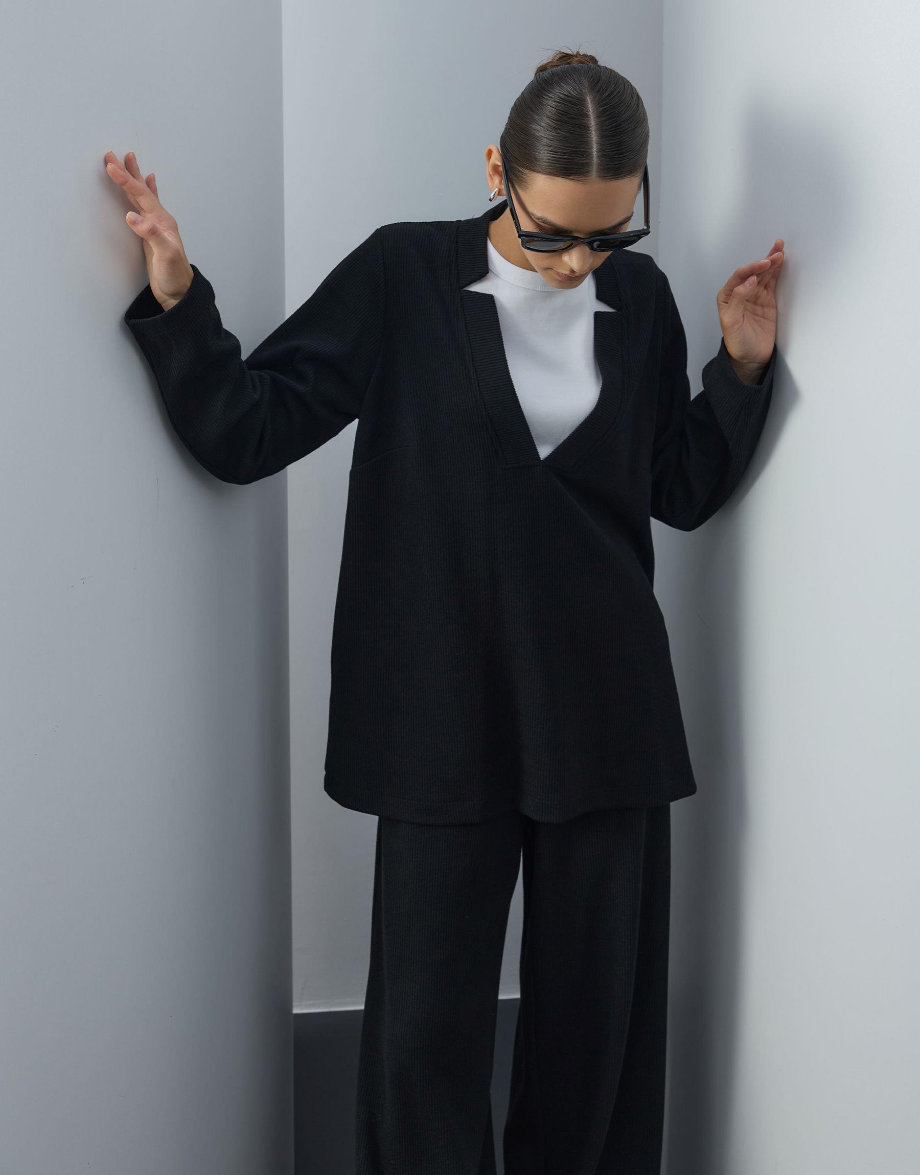 Bayan Siyah Triko V Yaka Bol Formlu Takım | Sarprive