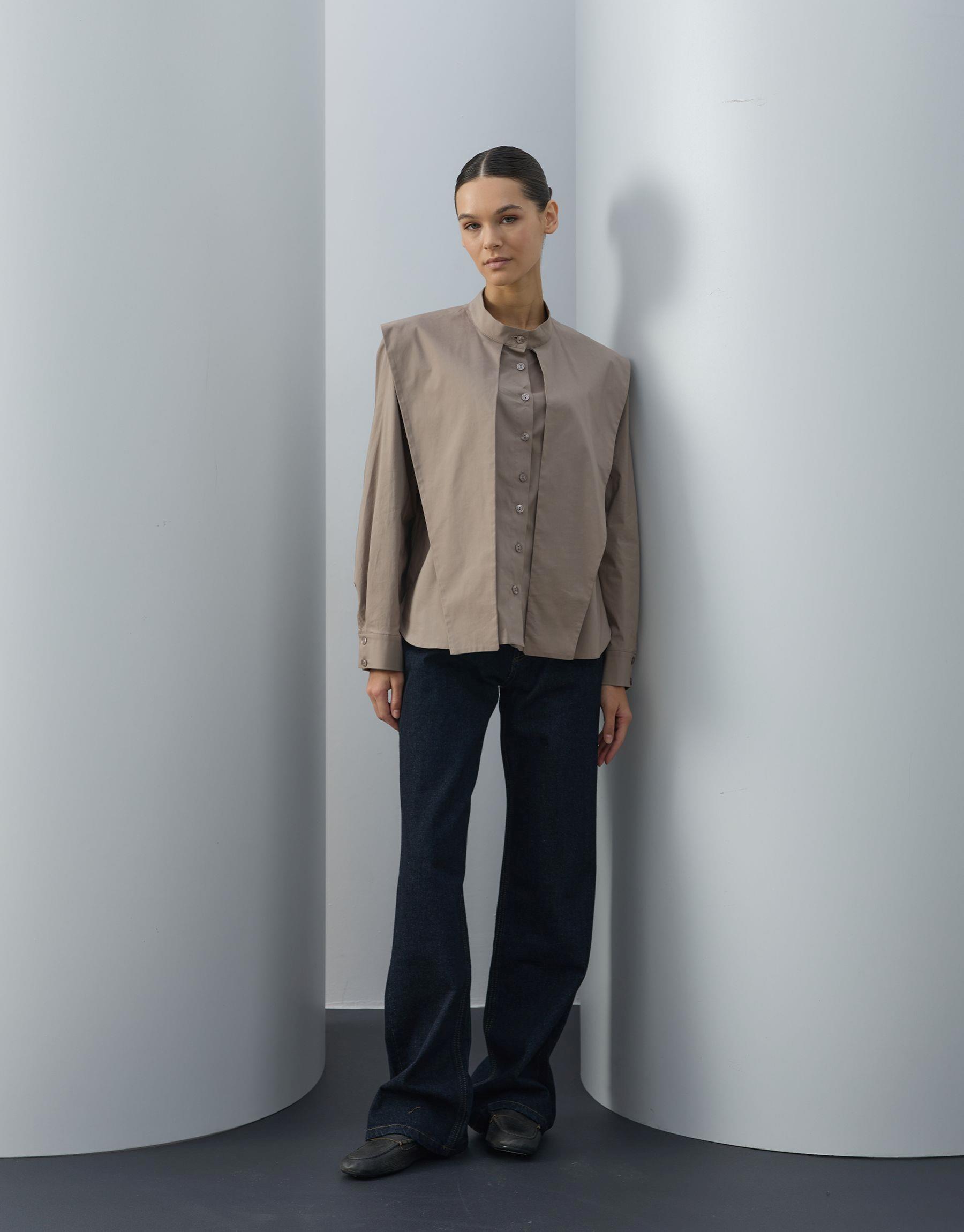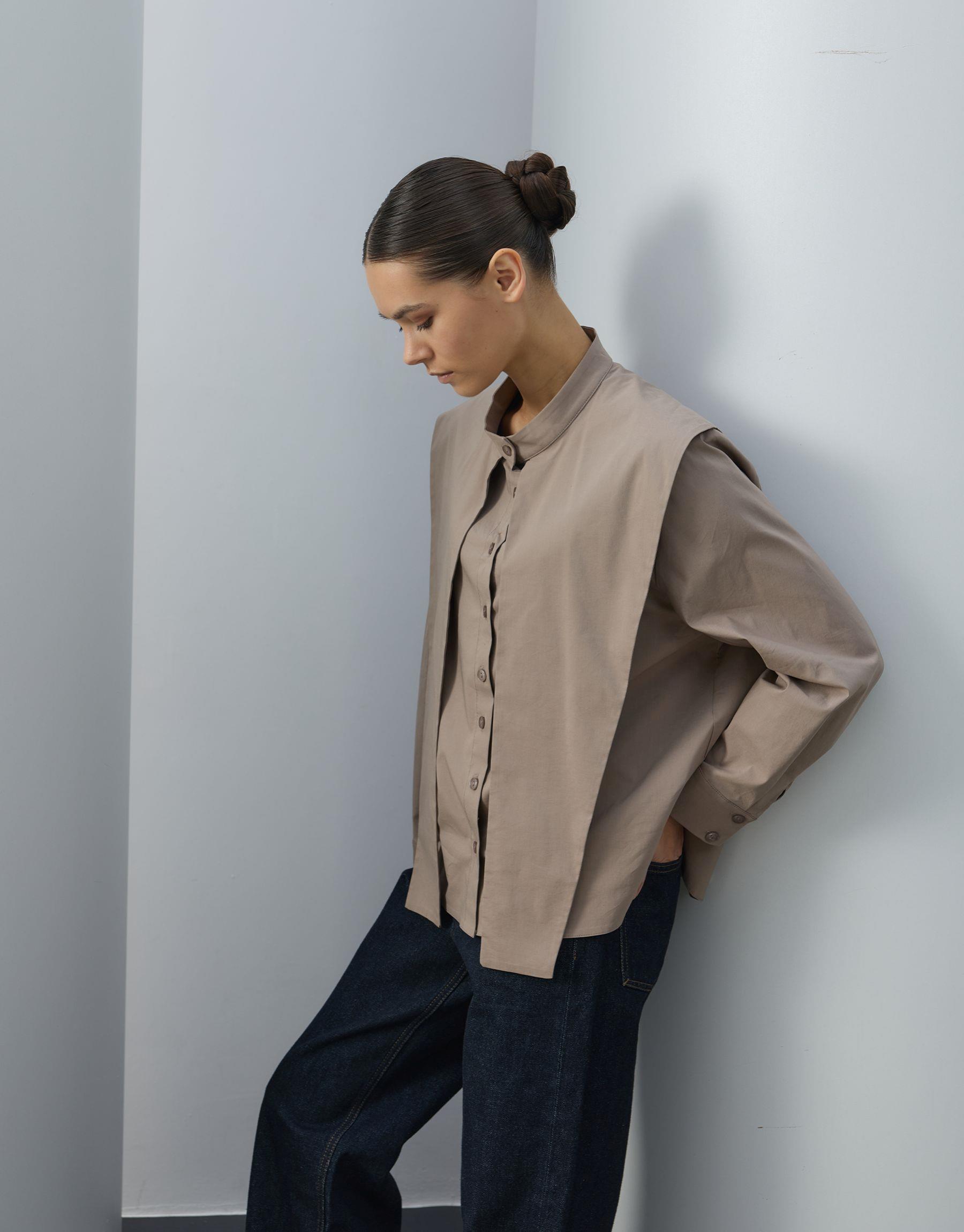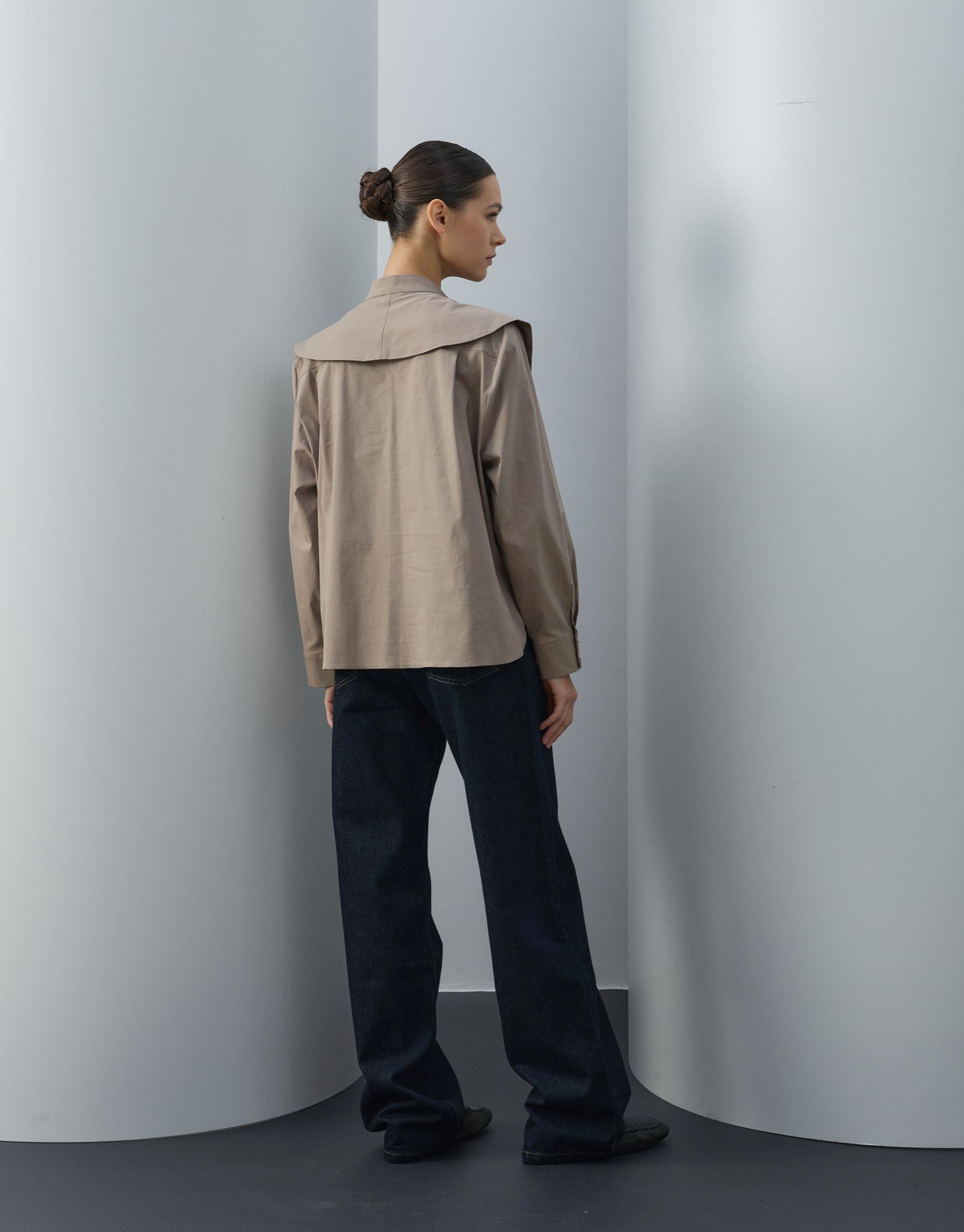 Bayan Vizon Poplin Aller Parçalı Gömlek | Sarprive
