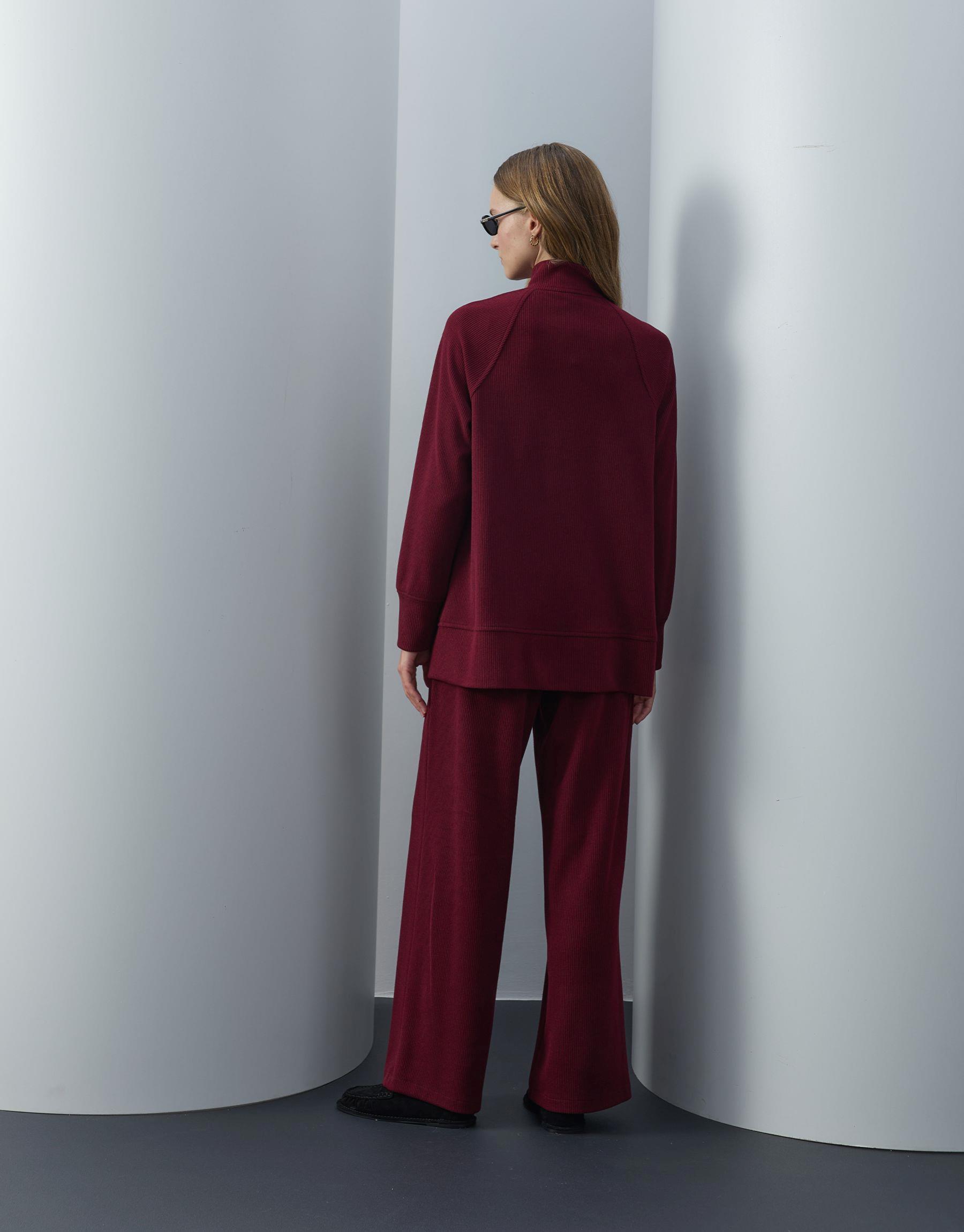 Bayan Bordo Triko Fermuarlı Bol Takım | Sarprive