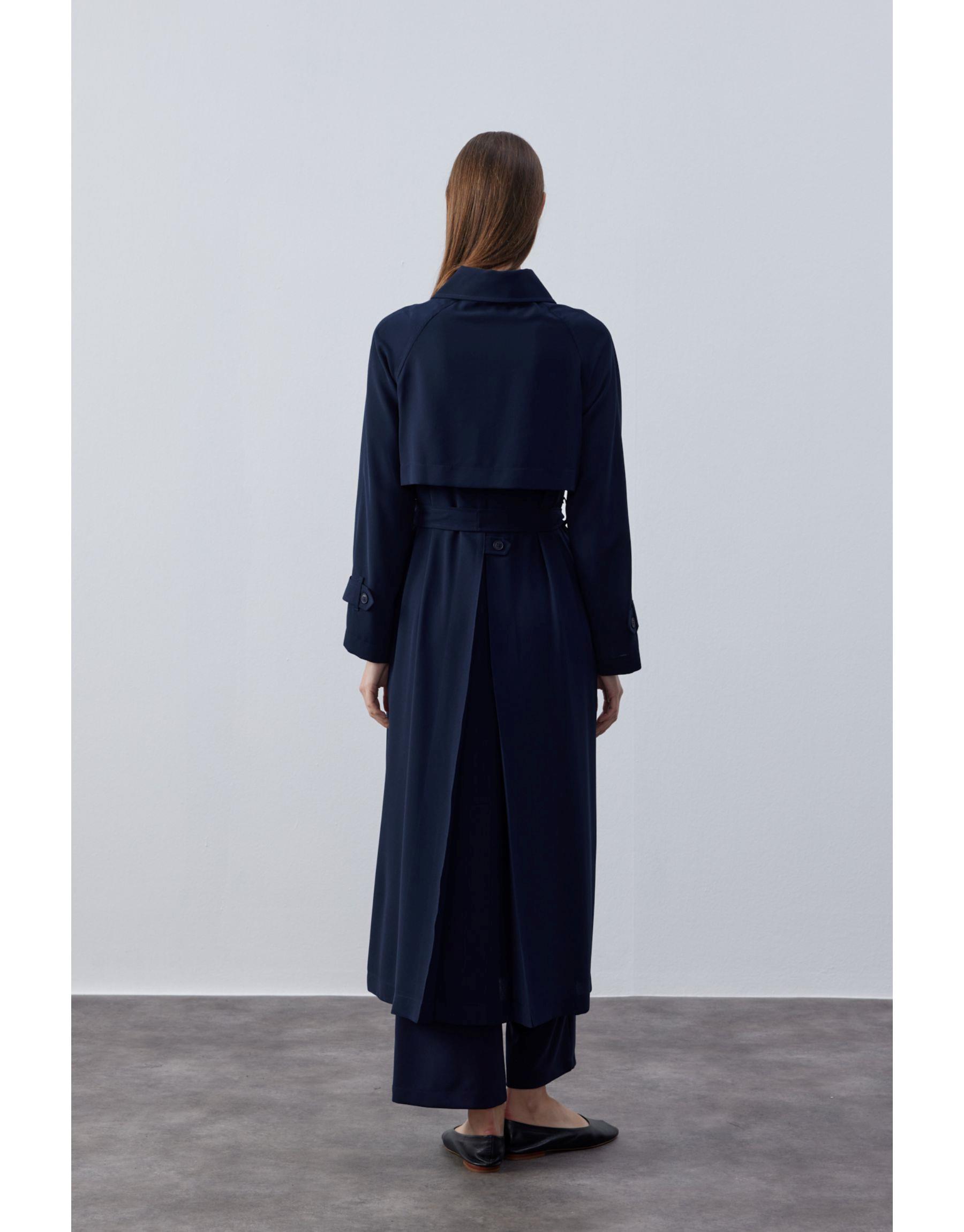 Bayan Lacivert Mevsimlik Krep Trenç | Sarprive