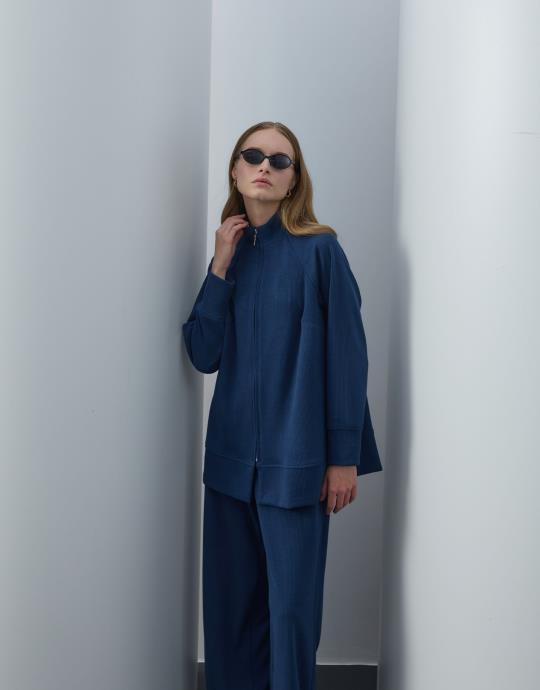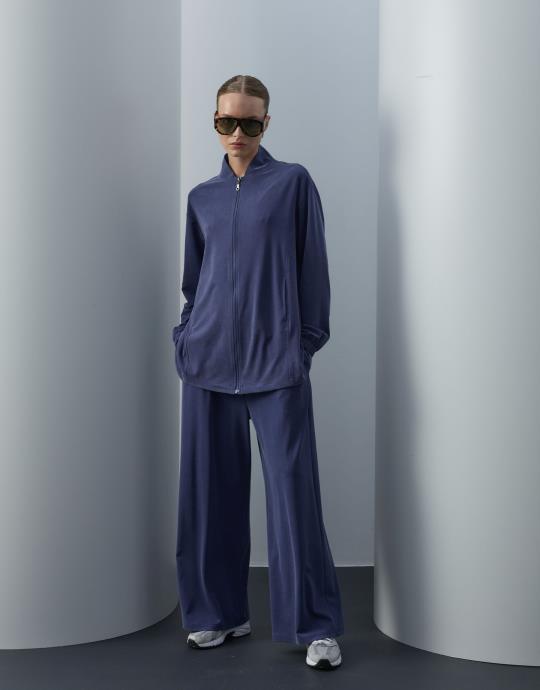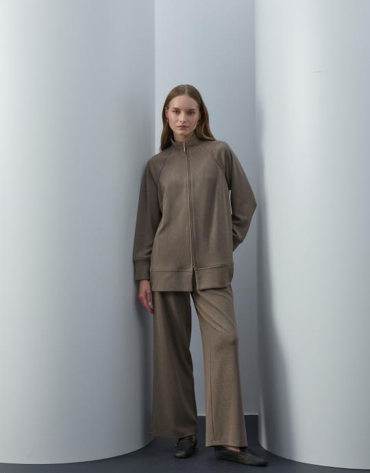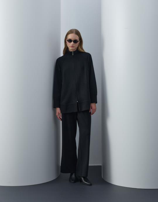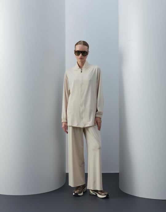 Bol kesimiyle rahat ve şık bir siluet yaratan pantolon, takımın dinamik duruşunu tamamlar. Gün boyu konfor sağlarken, uzun paçaları ve dökümlü yapısıyla topuklularla birleştiğinde zarif bir uzama etkisi yaratır.
